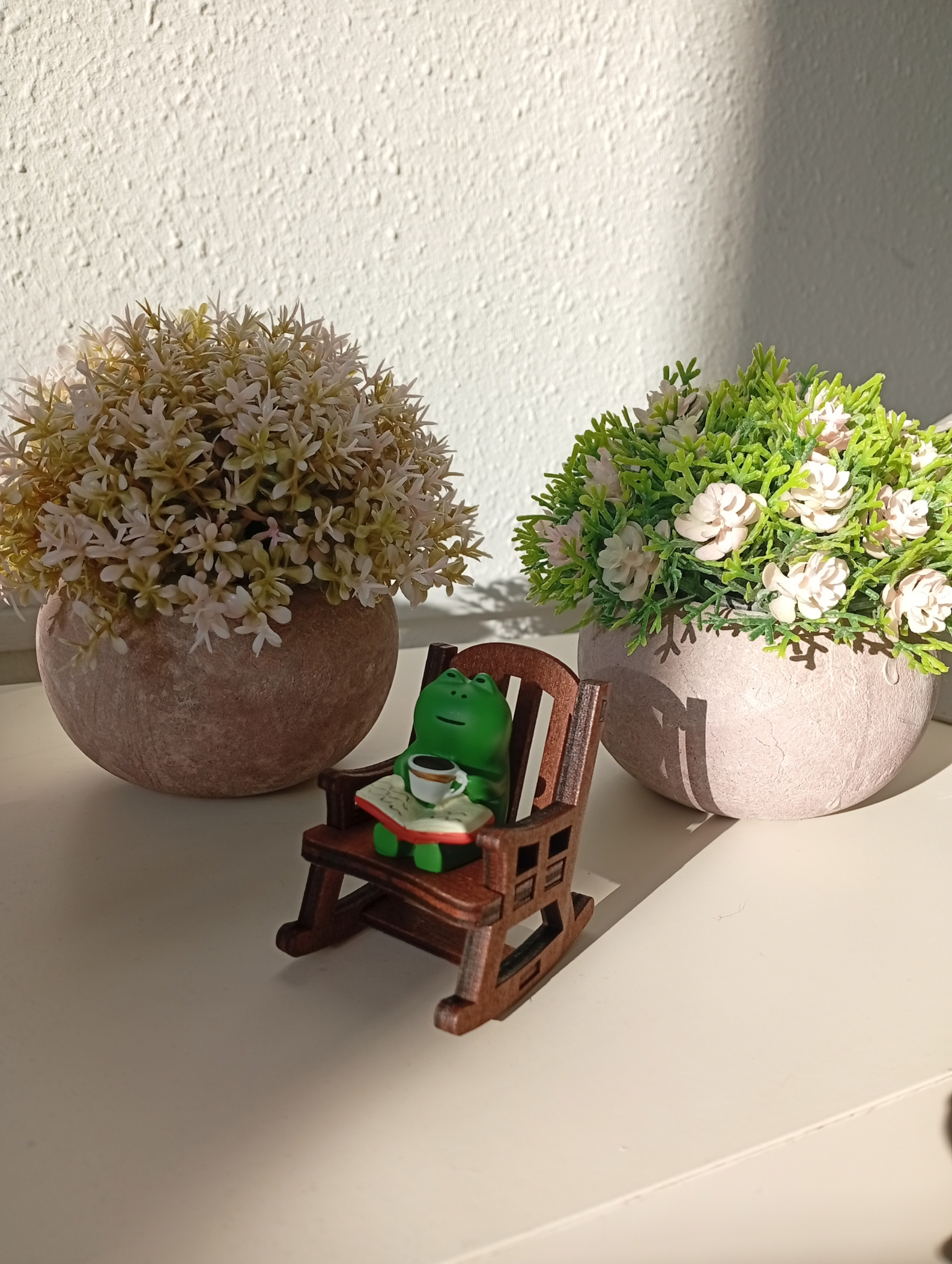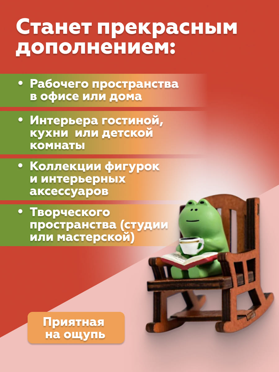 Очаровательный Лягушонок в кресле – не просто игрушка, а ваш новый интерьерный компаньон, излучающий умиротворение и уют. Он знает толк в отдыхе и приглашает вас расслабиться.