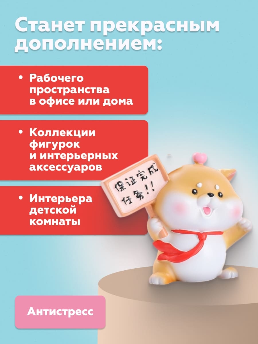 Милые фигурки сиба-ину, расположенные на рабочем столе или полке, создают уютную атмосферу и поднимают настроение во время работы или учебы.