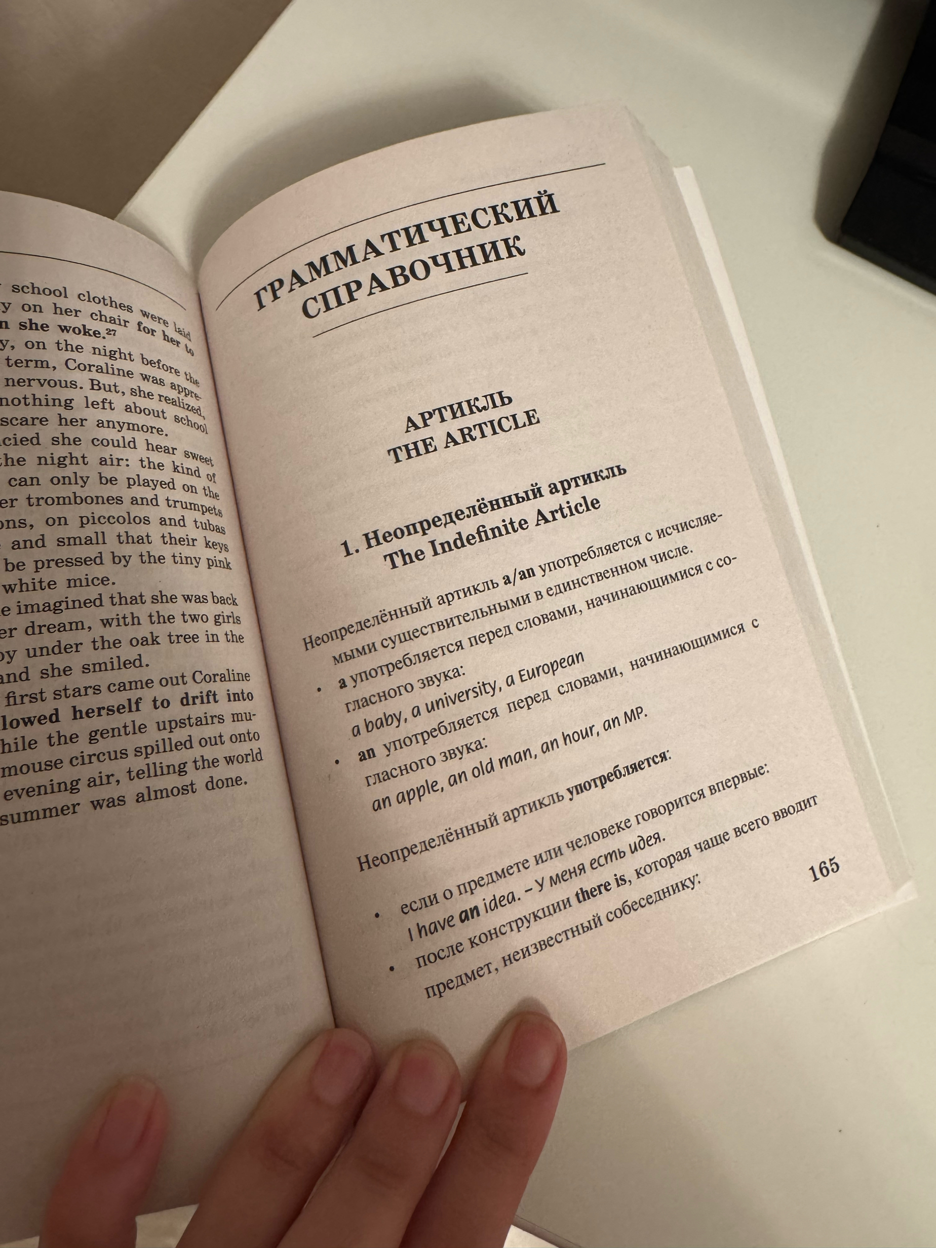Книга подходит для изучения грамматики Английского языка. Скорее, для продолжающих, чем для тех, кто с нуля. Выбирала из-за удобного формата - в тексте выделены слова/фразы/предложения со ссылками и «на полях» дается перевод, краткое объяснение построения и номер правила из грамматического справочника. Грамматически справочник занимает половину книги:) - удобно тем, что не нужно искать правила в сторонних ресурсах. Классическая страшилка от Нила Геймана. Читается легко и быстро :)