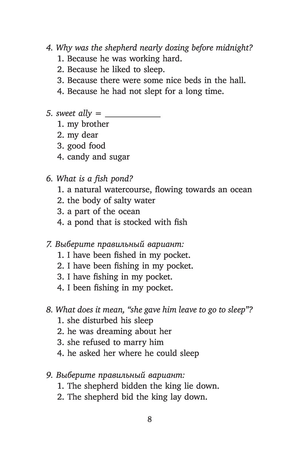 | Дополнительно | Комментарии, словарь, упражнения |