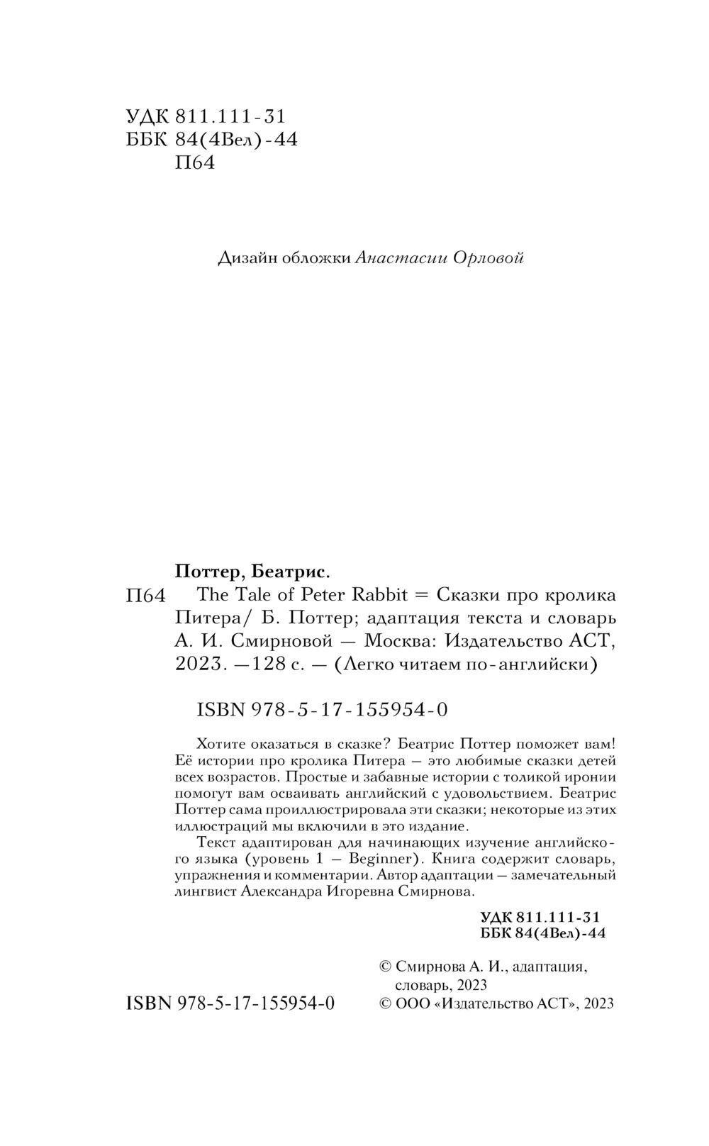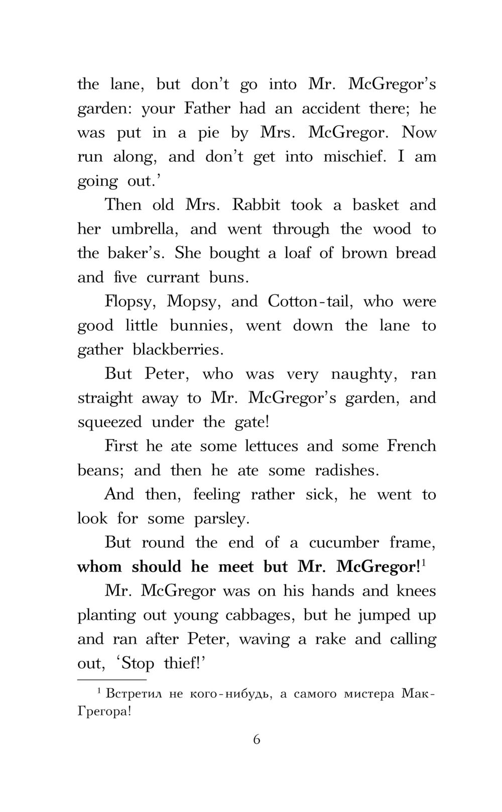Её истории про кролика Питера – это любимые сказки детей всех возрастов. Простые и забавные истории с толикой иронии помогут вам осваивать английский с удовольствием. Беатрис Поттер сама проиллюстрировала эти сказки; некоторые из этих иллюстраций мы включили в это издание.