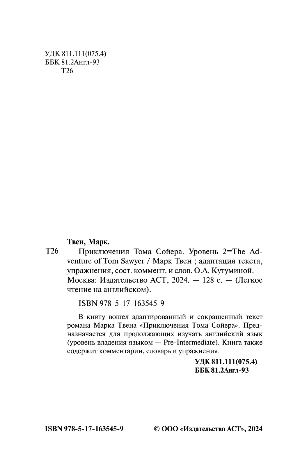 Первая книга для изучения иностранного языка из цикла «Приключения Тома Сойера».