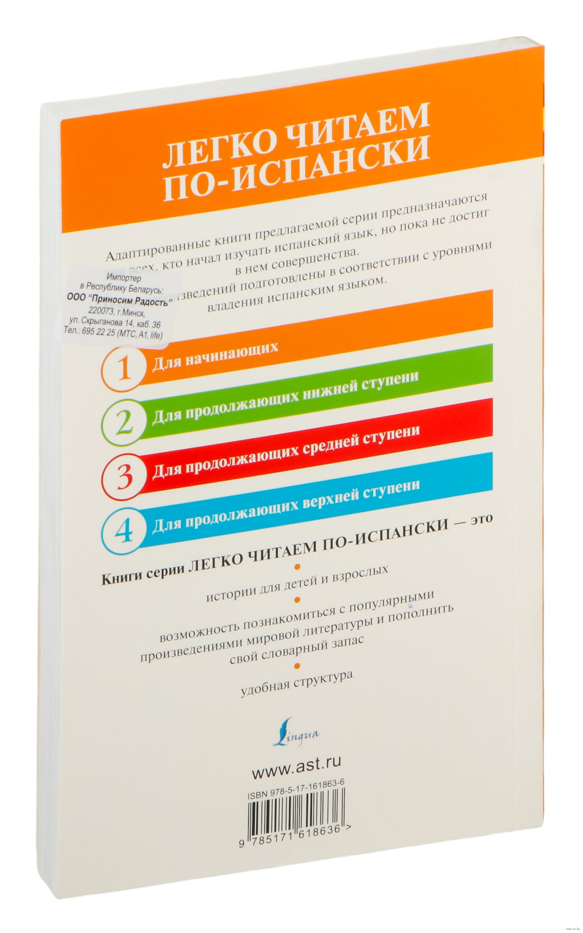 Текст книги сокращён, адаптирован и сопровождается комментариями и упражнениями с ответами. Также в конце книги вы найдёте небольшой испанско-русский словарь, который поможет вам с выполнением заданий.