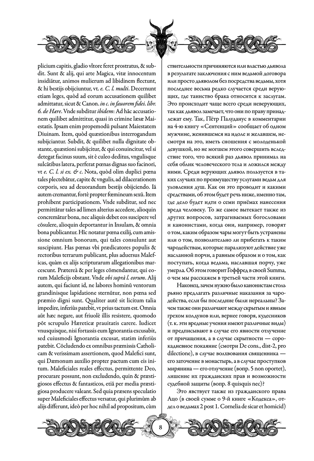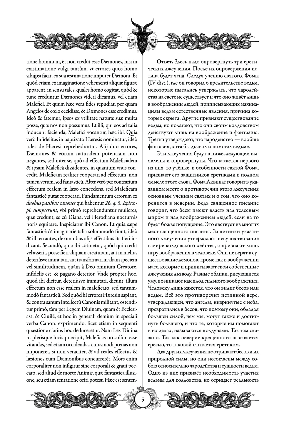 Инквизиторы Якоб Шпренгер и Генрих Крамер, опираясь на свою практику и ссылаясь на достоверные источники вроде слухов о колдовстве и обвинений в дьявольской порче коровьего молока, создали подробную инструкцию по тому, как находить ведьм, правильно их пытать, чтобы добиться признания вины, и приводить приговоры в исполнение. Педантичный разбор каждого этапа охоты на ведьм описывает судебную систему XV века и знания о мире как простых людей, так и представителей духовенства. "Молот ведьм" – бесспорный памятник своему времени, который погружает в настоящее Средневековье.