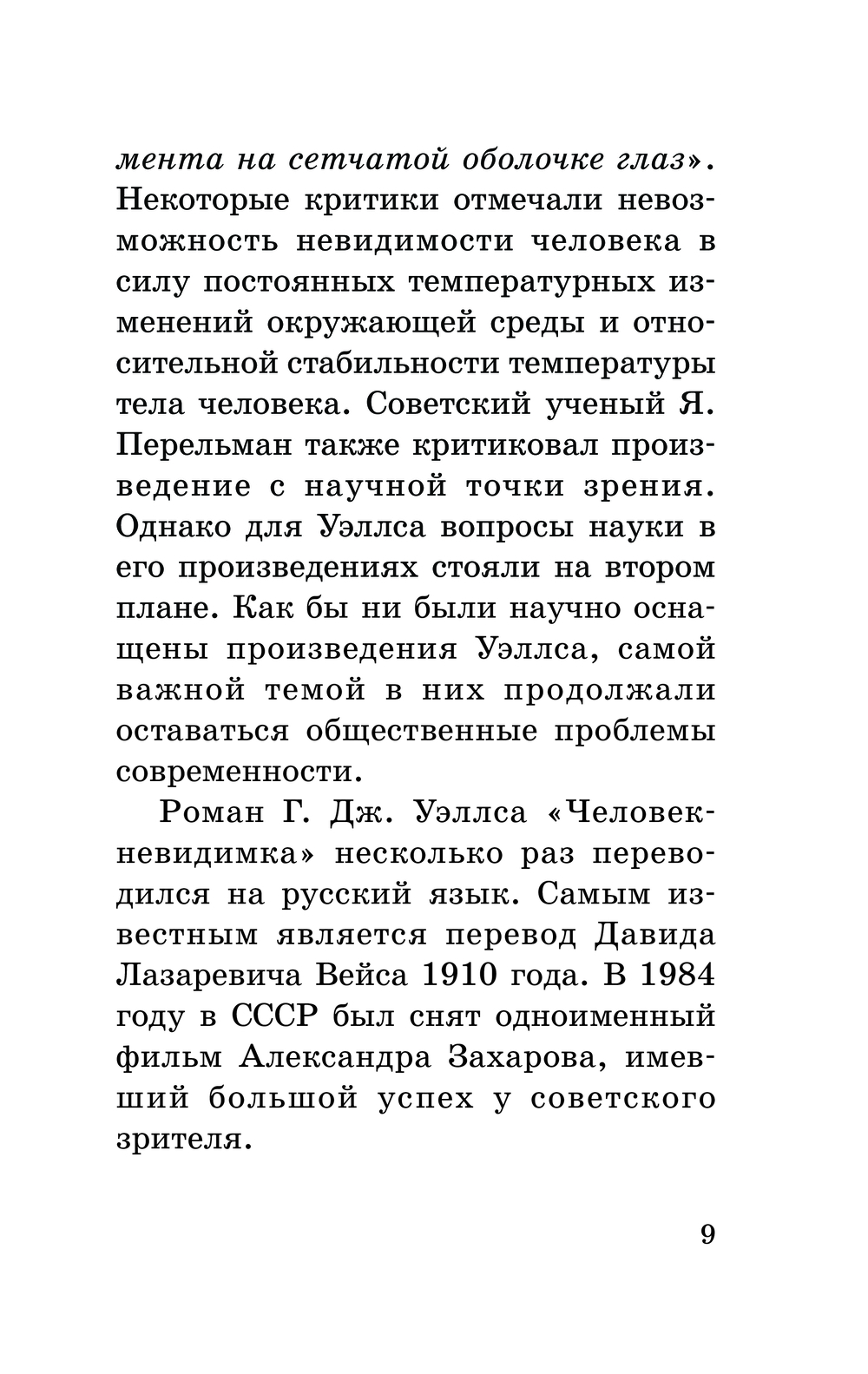 В книгу вошел незначительно сокращенный и адаптированный текст научно-фантастического романа Г.Дж.Уэллса "Человек-невидимка". В данном романе описывается судьба британского учёного, который изобрёл способ сделать человека невидимым.