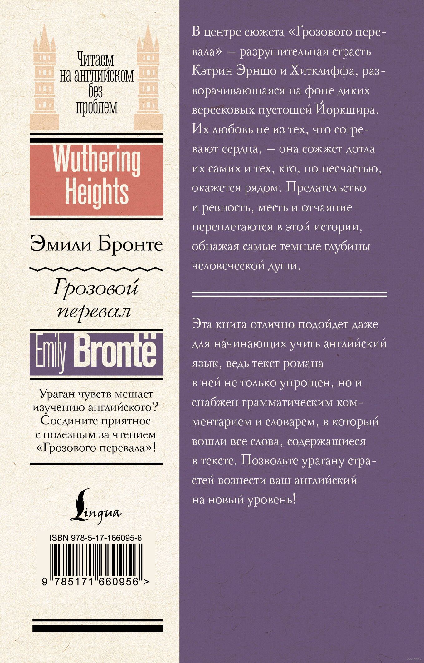 Эта книга отлично подойдет даже для начинающих учить английский язык, ведь текст романа в ней не только упрощен, но и снабжен грамматическим комментарием и словарем, в который вошли все слова, содержащиеся в тексте. Позвольте урагану страстей вознести ваш английский на новый уровень!