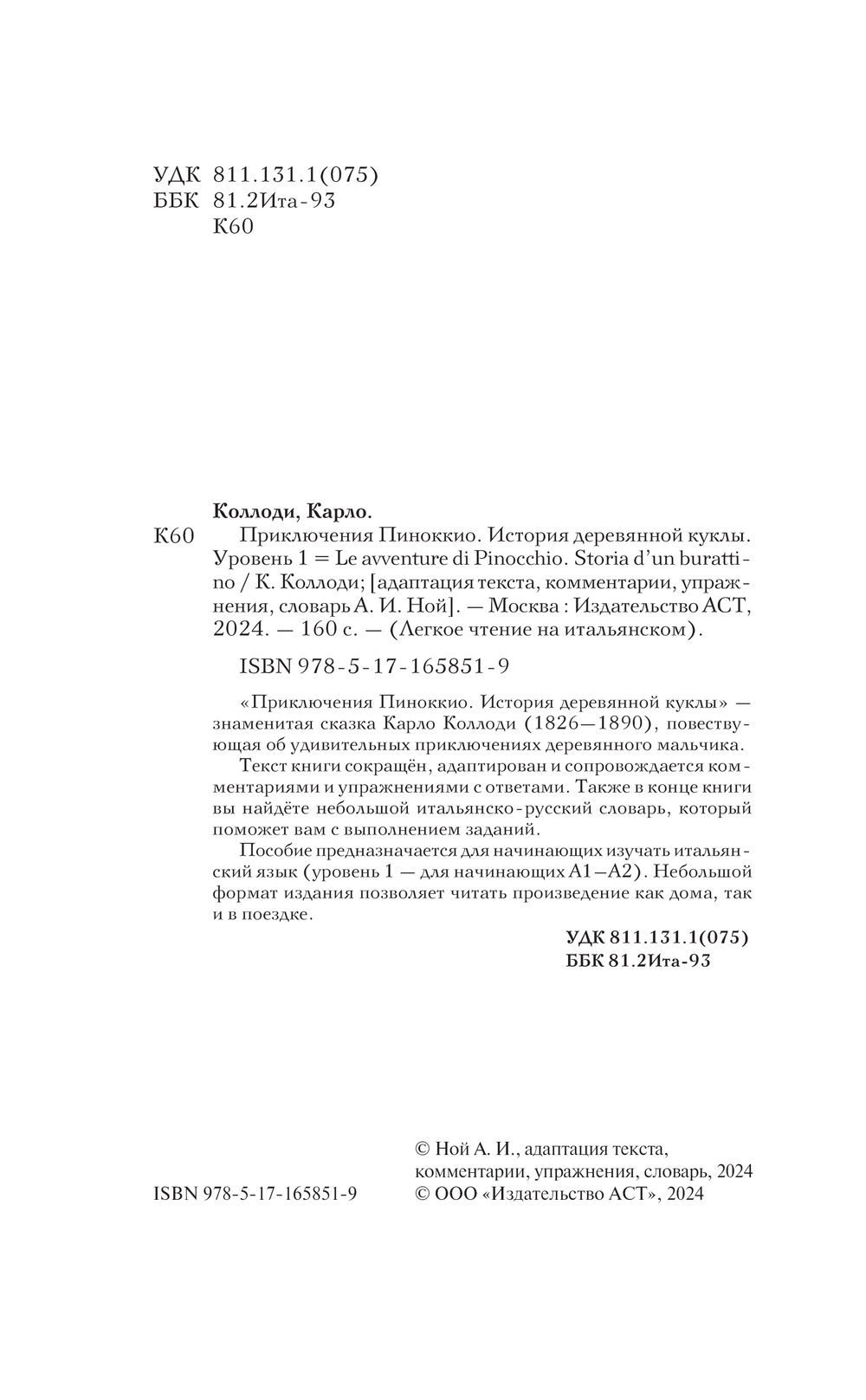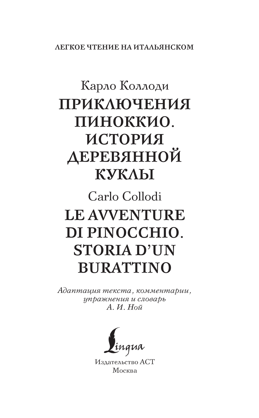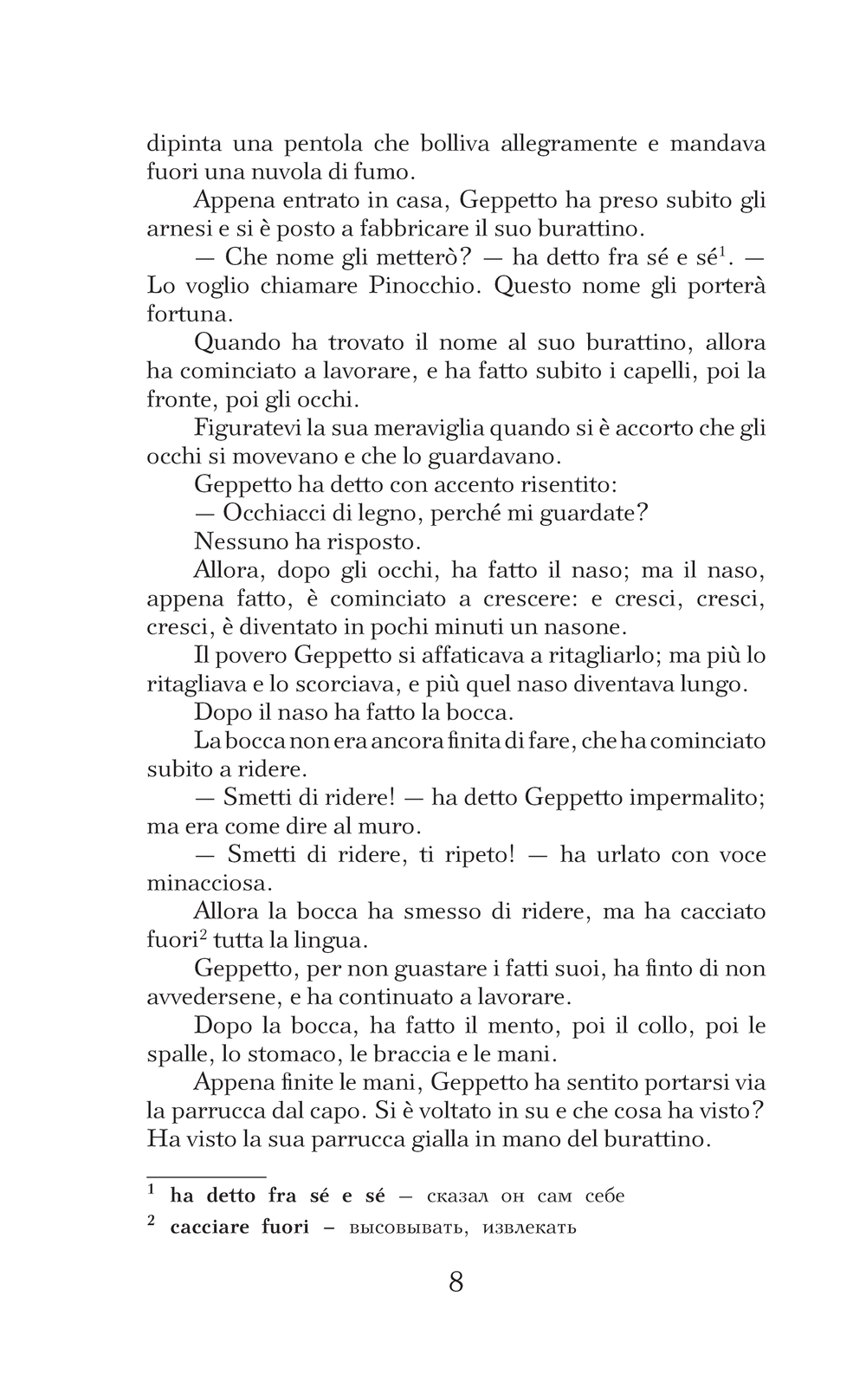 Текст книги сокращён, адаптирован и сопровождается комментариями и упражнениями с ответами. Также в конце книги вы найдёте небольшой итальянско-русский словарь, который поможет вам с выполнением заданий.