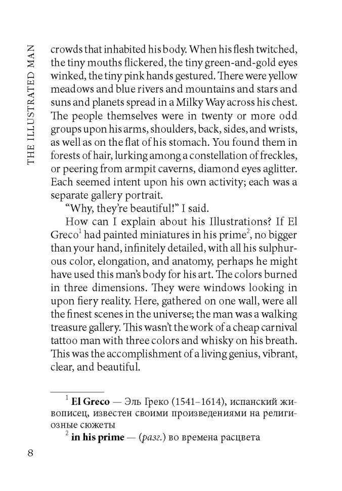 Перед вами сборник рассказов Рэя Брэдбери – знаменитого американского писателя, классика научной фантастики XX века. Главное чувство, которое вызывают его произведения, – границы между фантазией и реальностью очень зыбки. "Человек в картинках" – коллекция коротких историй, образцов философско-фантастической прозы, которая стала визитной карточкой автора и принесла ему мировую известность. Мастер слова, Брэдбери сделал научную фантастику и фэнтези одними из ведущих литературных направлений современности.