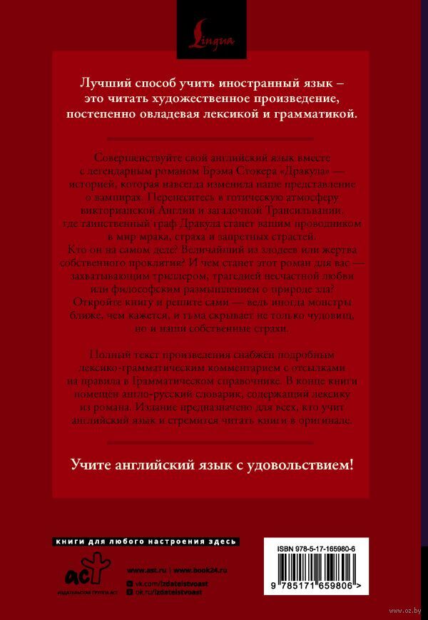 Совершенствуйте свой английский язык вместе с легендарным романом Брэма Стокера "Дракула" – историей, которая навсегда изменила наше представление о вампирах. Перенеситесь в готическую атмосферу викторианской Англии и Трансильвании, где таинственный граф Дракула станет вашим проводником в мир мрака, страха и запретных страстей. Кто он на самом деле?