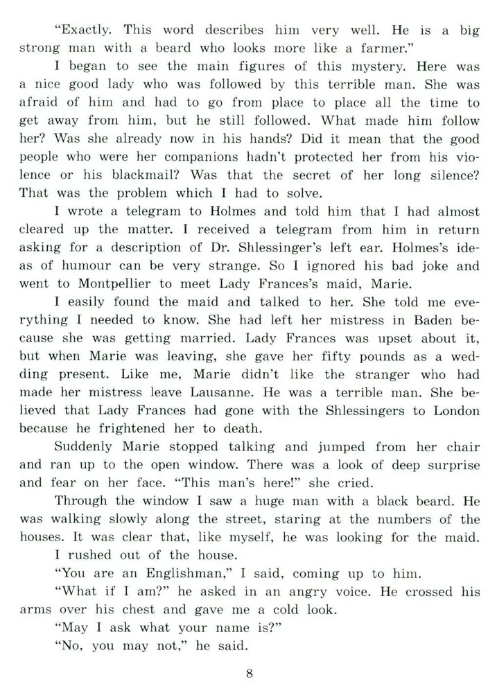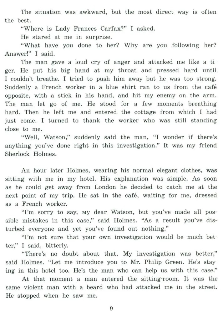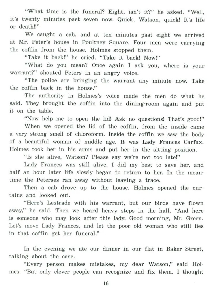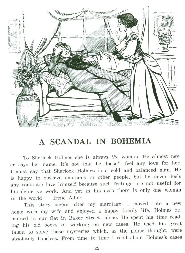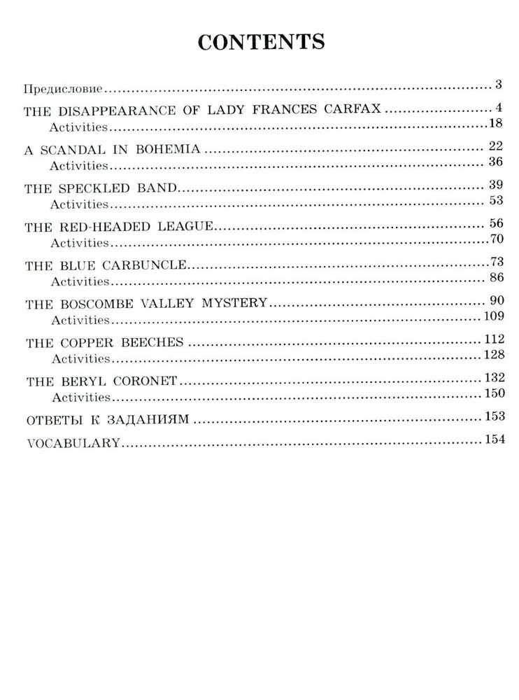 В сборнике представлены восемь адаптированных рассказов Артура Конан Дойла о расследованиях запутанных преступлений, которые ведут знаменитый сыщик Шерлок Холмс и его друг и соратник доктор Ватсон.