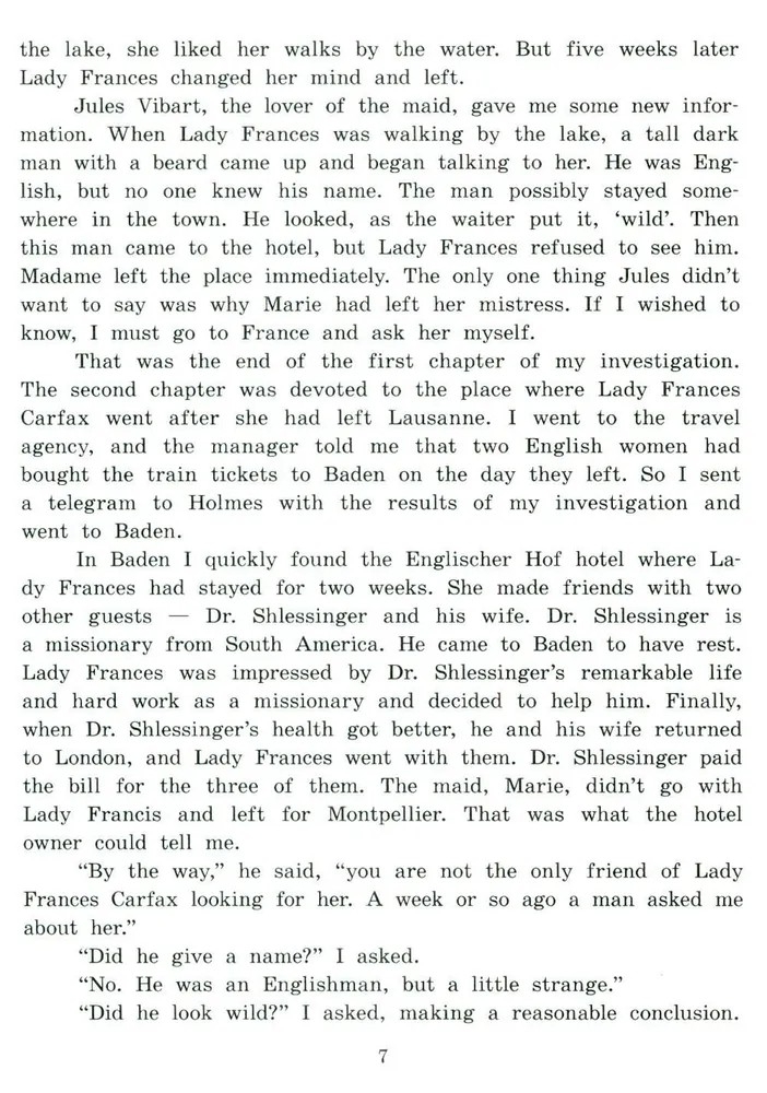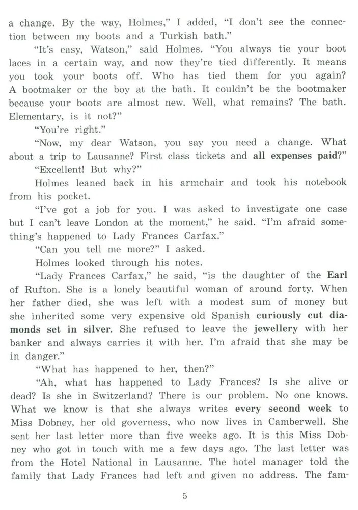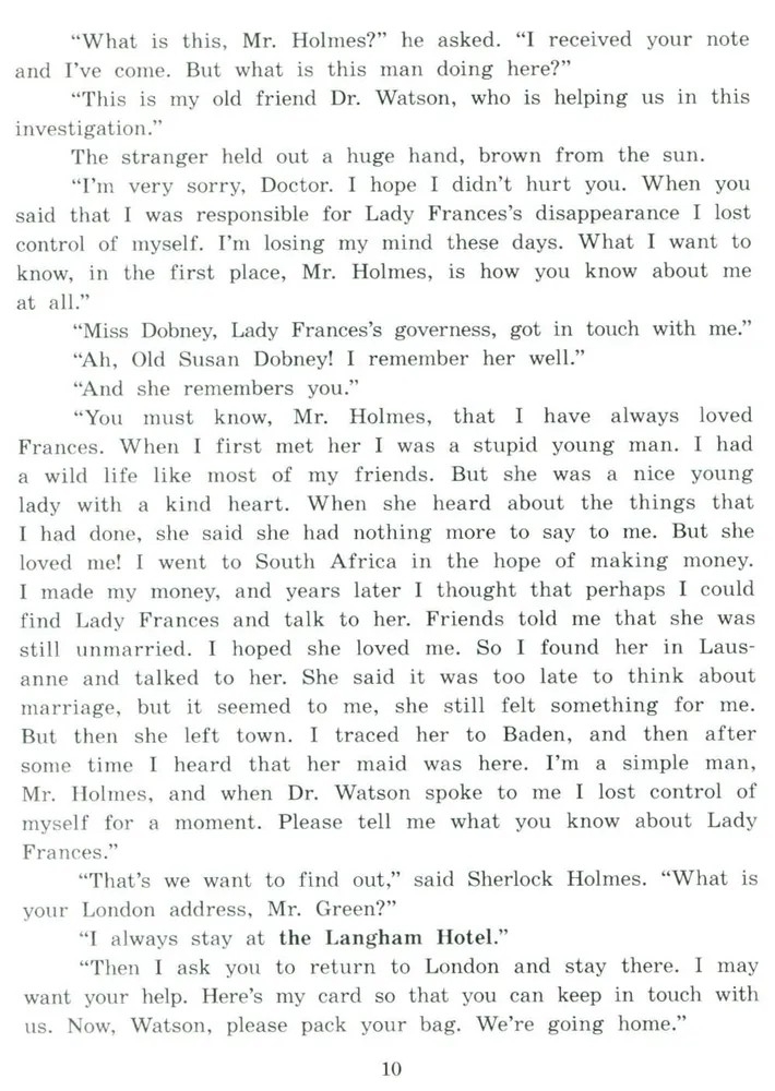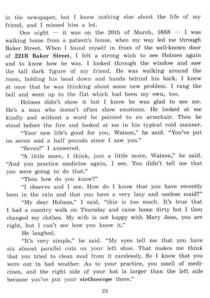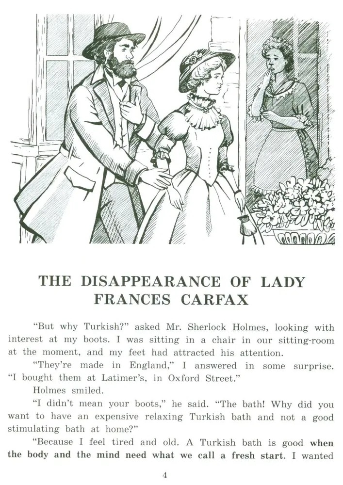 В сборнике представлены восемь адаптированных рассказов Артура Конан Дойла о расследованиях запутанных преступлений, которые ведут знаменитый сыщик Шерлок Холмс и его друг и соратник доктор Ватсон.