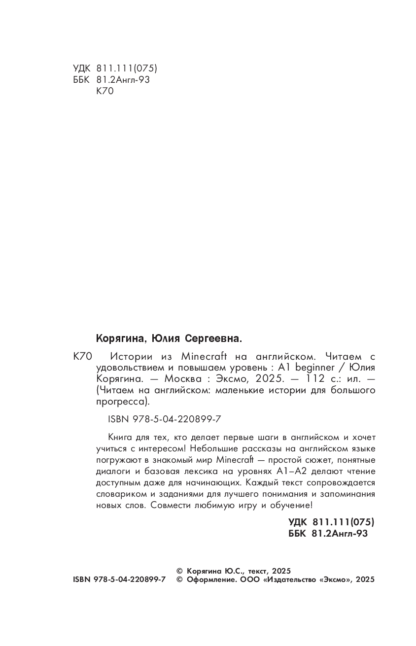 Эта книга создана специально для начинающих: в ней есть простые рассказы на английском языке, герои, вдохновлённые Minecraft, и полезные задания после каждого текста.