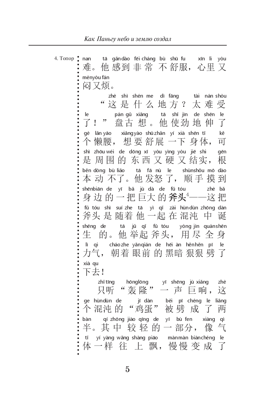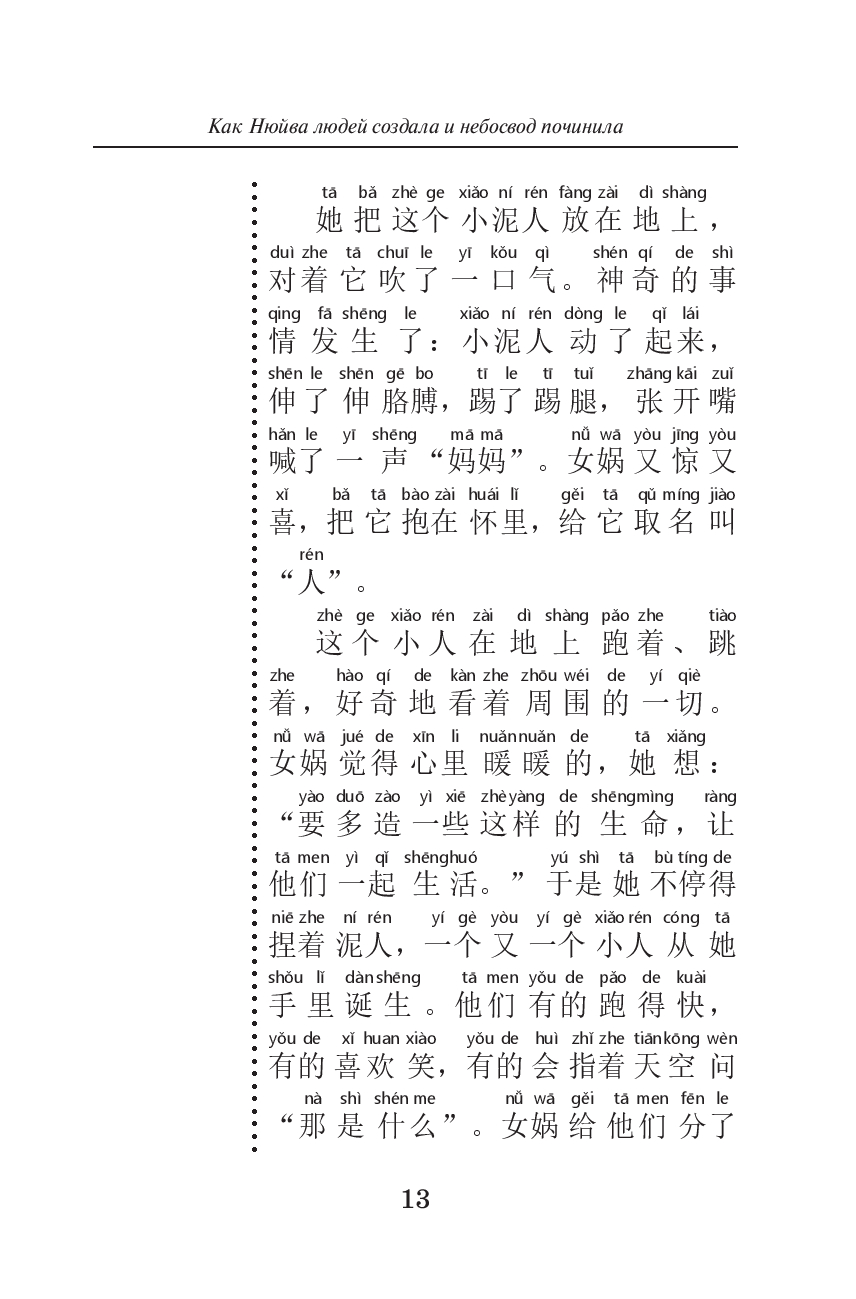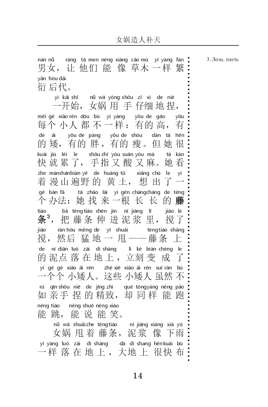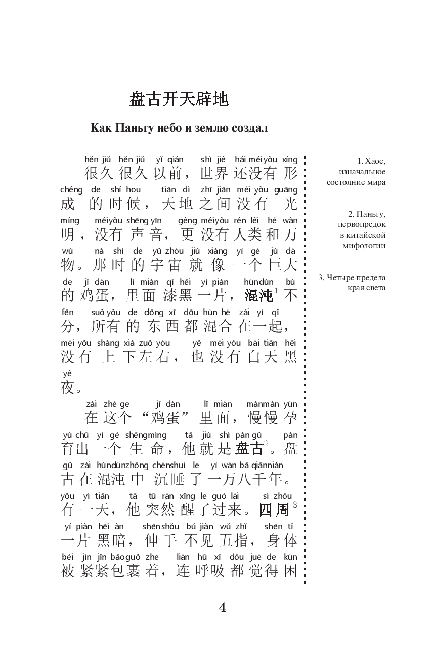 Сборник состоит из 14 китайских легенд, каждая из которых сопровождается надстрочной транскрипцией пиньинь, а также комментариями. Для тренировки чтения к изданию прилагается специальная закладка с прорезями, которая позволяет попеременно читать иероглифы и их произношение.