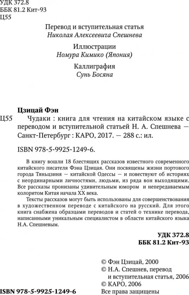 Все рассказы пронизаны удивительным юмором и непередаваемым колоритом Китая начала XX века. Тексты рассказов могут быть использованы для совершенствования в художественном переводе с китайского на русский. Для этого книга снабжена образцами переводов и статей о технике перевода, написанными уникальным специалистом в области китайского языка Н. А. Спешневым.