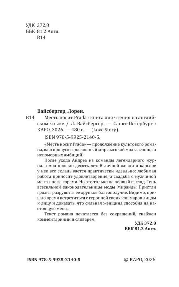 Вторая книга для изучения иностранного языка из цикла «Дьявол носит "Prada"».