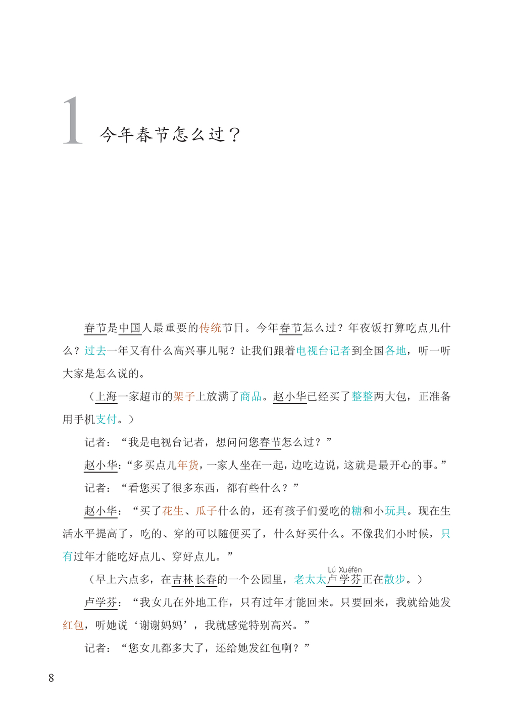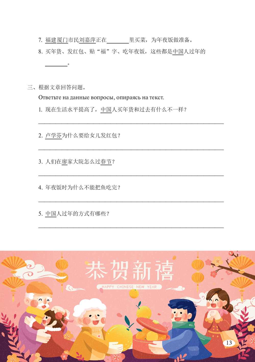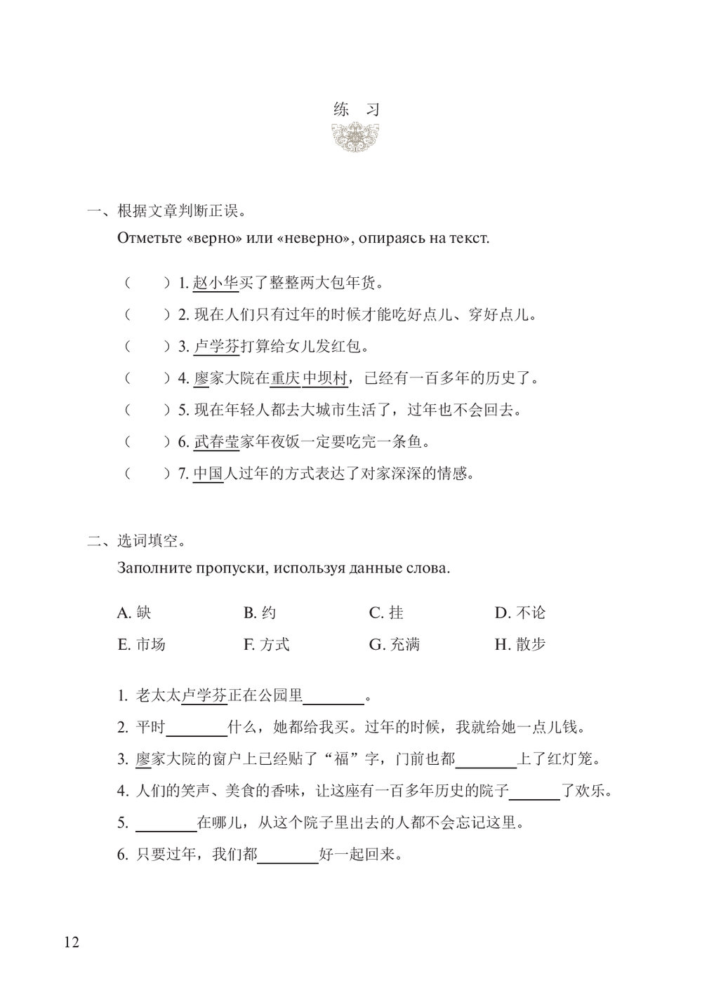 Тексты, представленные в этом пособии, рассказывают о национальных праздниках китайцев, а также малых народностей, проживающих на территории Китая, в них описываются праздничные традиции, одежда и угощения. Все тексты сопровождены кратким словарем, культуроведческими справками и упражнениями для закрепления лексики. В конце издания вы найдете ответы для самопроверки и полноценный словарь новых слов.