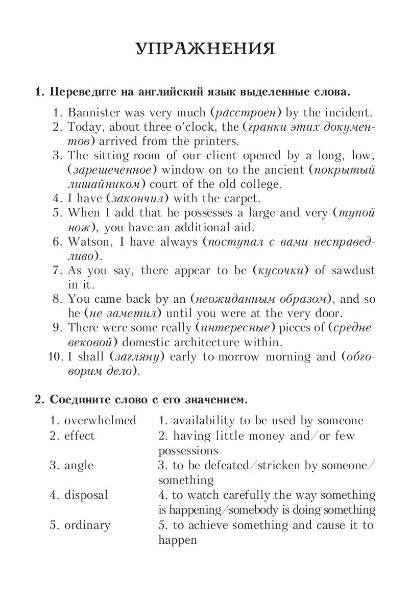 Книга содержит неадаптированный текст рассказов Артура Конан Дойла "Три студента" и "Последнее дело Шерлока Холмса" на английском языке, сопровождающийся упражнениями, комментариями и словарём. Перевод наиболее трудных предложений даётся в сносках, а сложные элементы выделены и объяснены в комментариях.