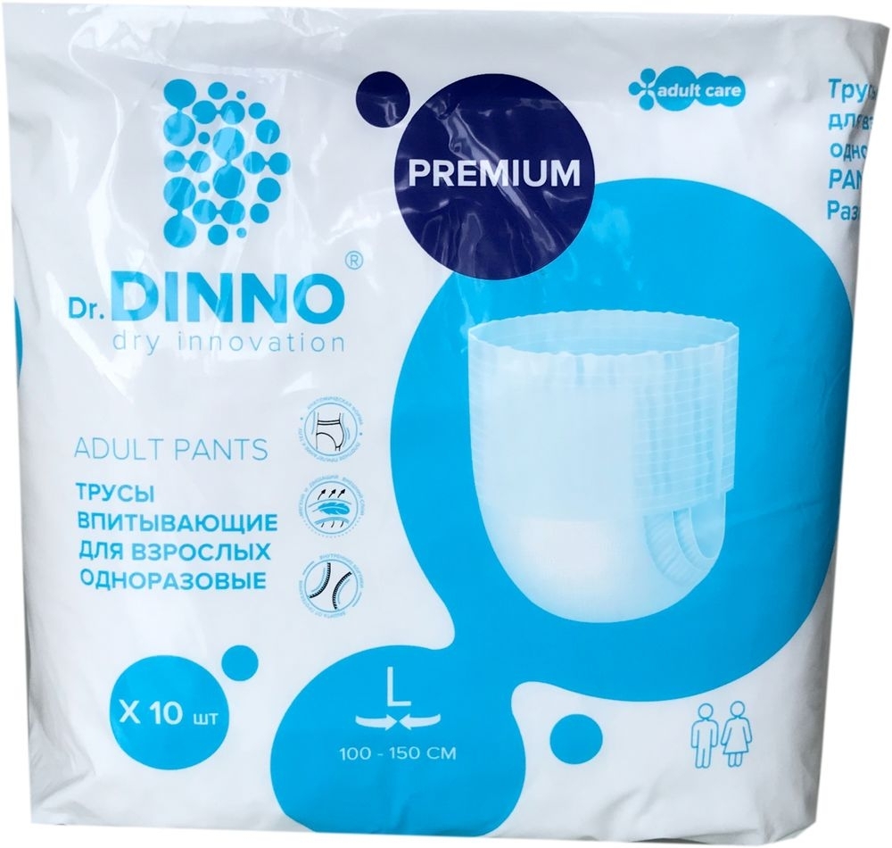 Трусики Dr. DINNO – это впитывающее нижнее бельё для активных людей. В отличие от классических подгузников, у трусиков нет застежек по бокам, он держится на теле благодаря эластичному поясу из ткани. Именно поэтому их легко надевать и снимать – совсем как обычные трусы!