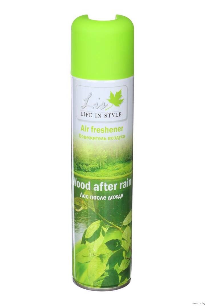 Освежитель воздуха с насыщенным ароматом леса после дождя.