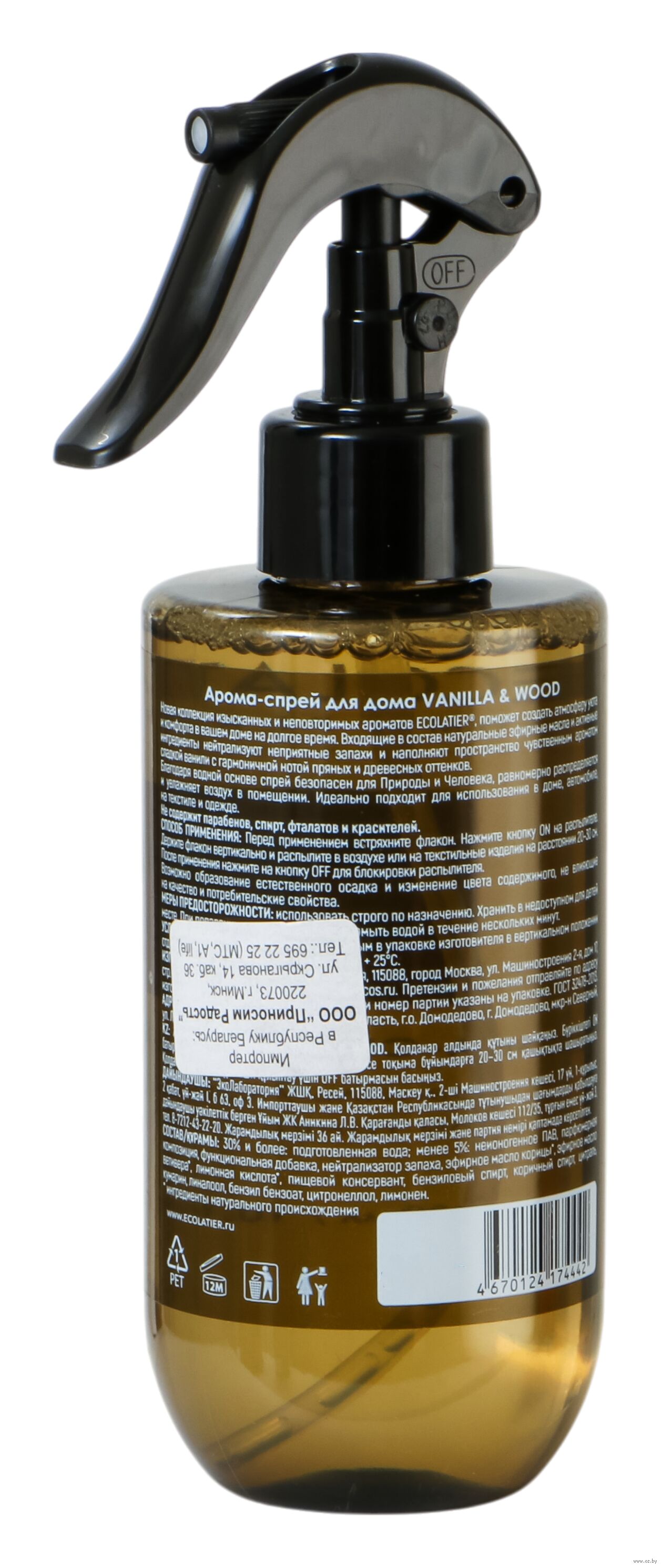 Натуральные эфирные масла и активные ингредиенты в составе этого спрея нейтрализуют неприятные запахи и наполняют пространство чувственным ароматом сладкой ванили с гармоничной нотой пряных и древесных оттенков.