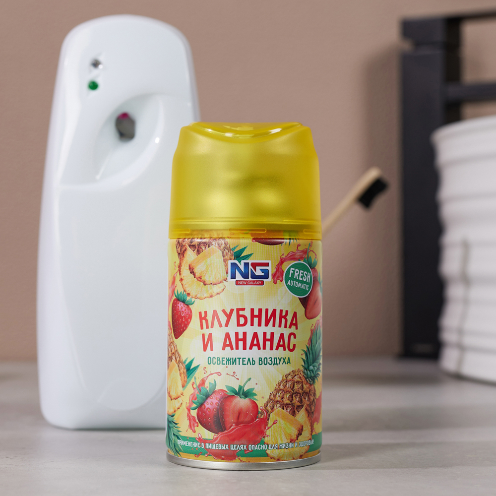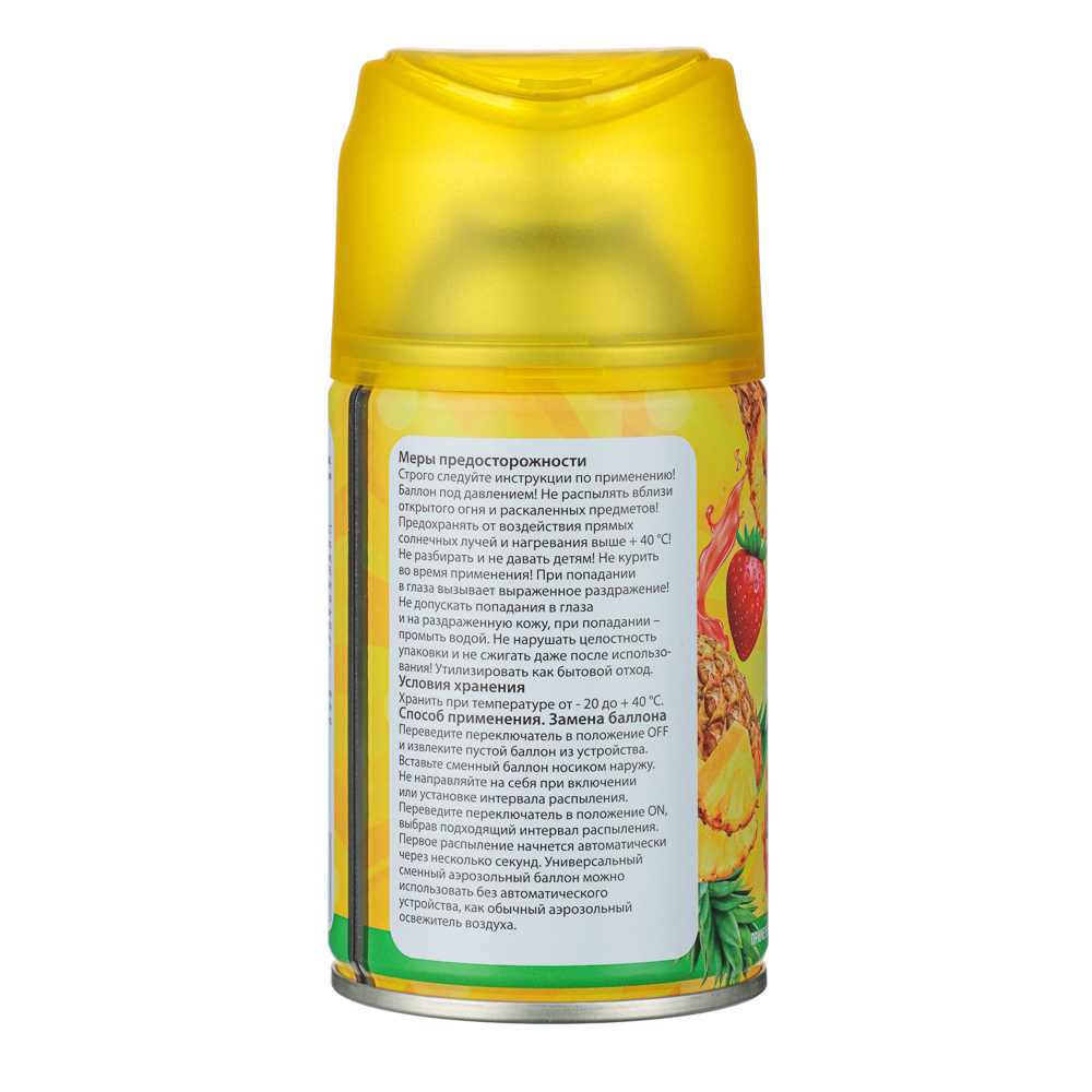 Освежитель воздуха "Автоматик Fresh" – это яркий аромат клубники и ананаса. Эффективно устраняет запахи в любых помещениях, обладает пролонгированным действием, надолго наполняя дом нежным благоухающим ароматом.