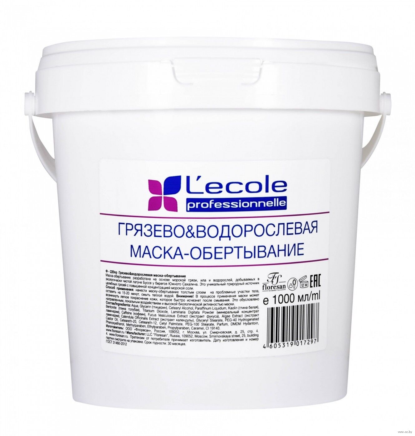 Aqua, Kaolin (Глина белая), Glycine Soja Oil (масло соевое), Cocos Nucifera Oil (масло кокосовое), Glycerin, Cetearyl Alcohol, Bentonite (Глина голубая), Glyceryl Stearate, Cetyl Palmitate, Fucus Vesiculosus Extract (Экстракт фукуса), Beta-Carotene, Calendula Officinalis Extract (Экстракт календулы), PEG-40 Hydrogenated Castor Oil, Xanthan Gum, Algae Extract (Экстракт ламинарии), Rhodiola Rosea Extract (Экстракт родиолы розовой), Parfum, Benzoic Acid, Sorbic Acid, Dehydroacetic Acid, Benzyl alcohol.