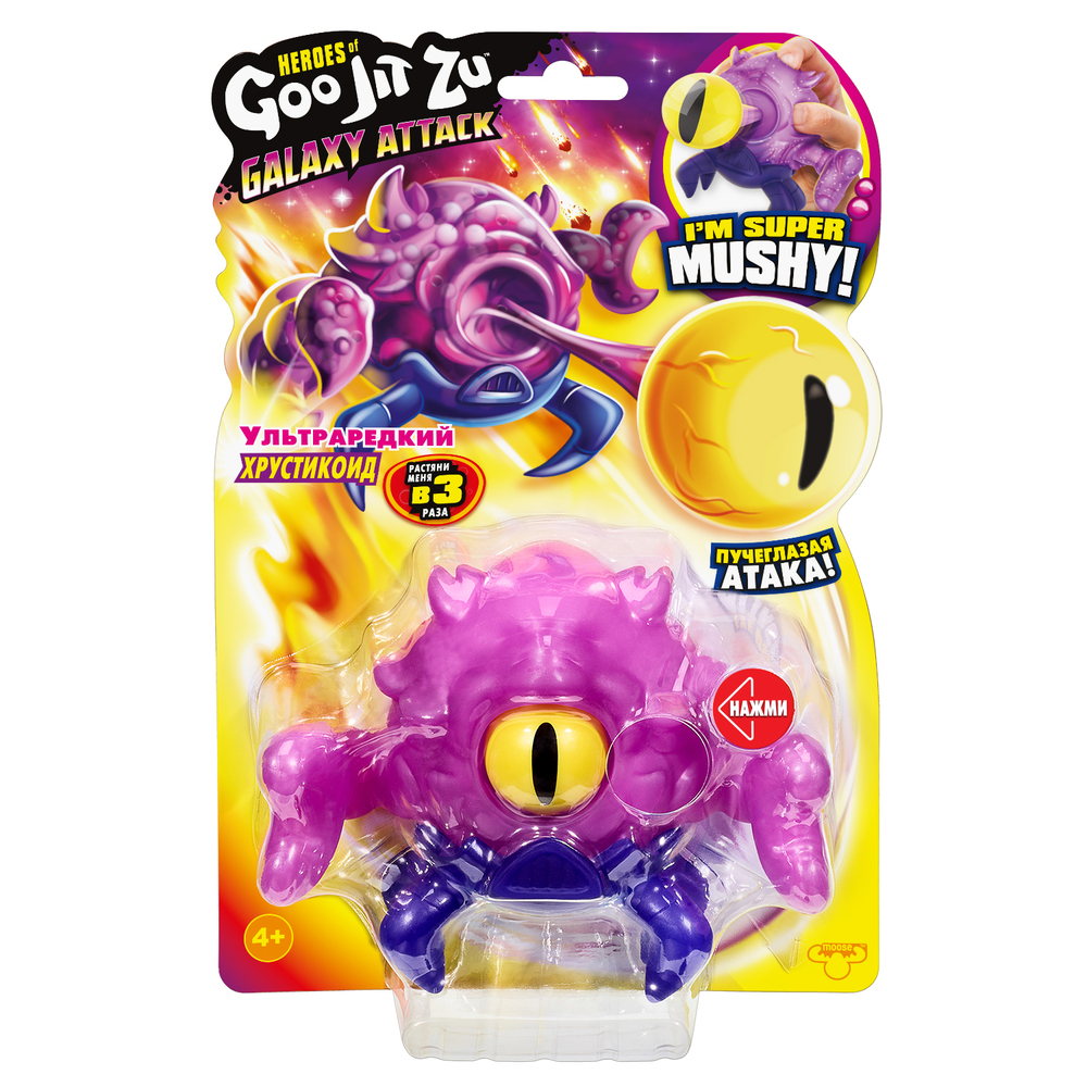 Тебе придется обыскать всю Гу-лактику, чтобы выследить Ультраредкого Хрустикоида. Но если Хрустикоид положил на тебя глаз, то берегись! Ведь его особенность – это невероятно мощная Пучеглазая атака! Сожми Хрустикоида, чтобы атаковать в бою!