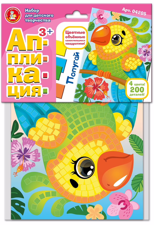 С помощью аппликации "Попугай" от "Десятого королевства" ваш ребёнок создаст красочную картинку и потренирует внимательность, аккуратность и мелкую моторику.