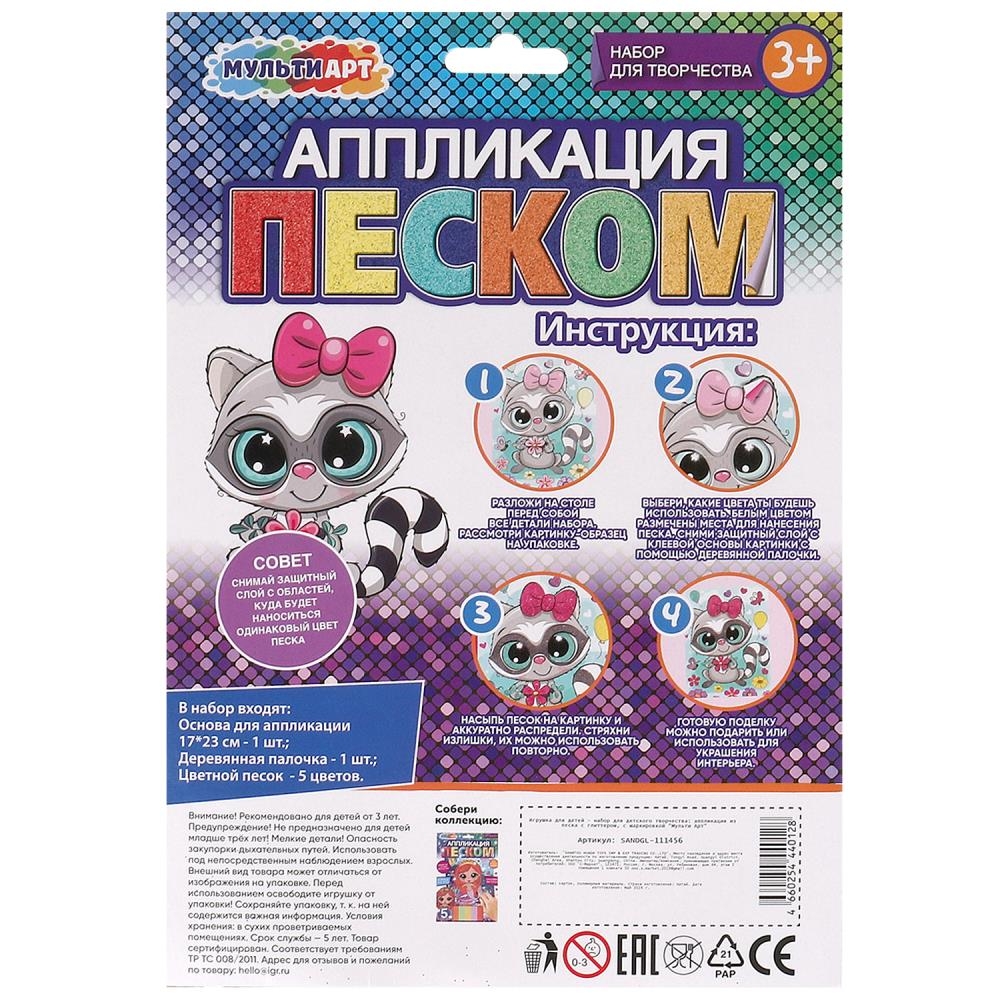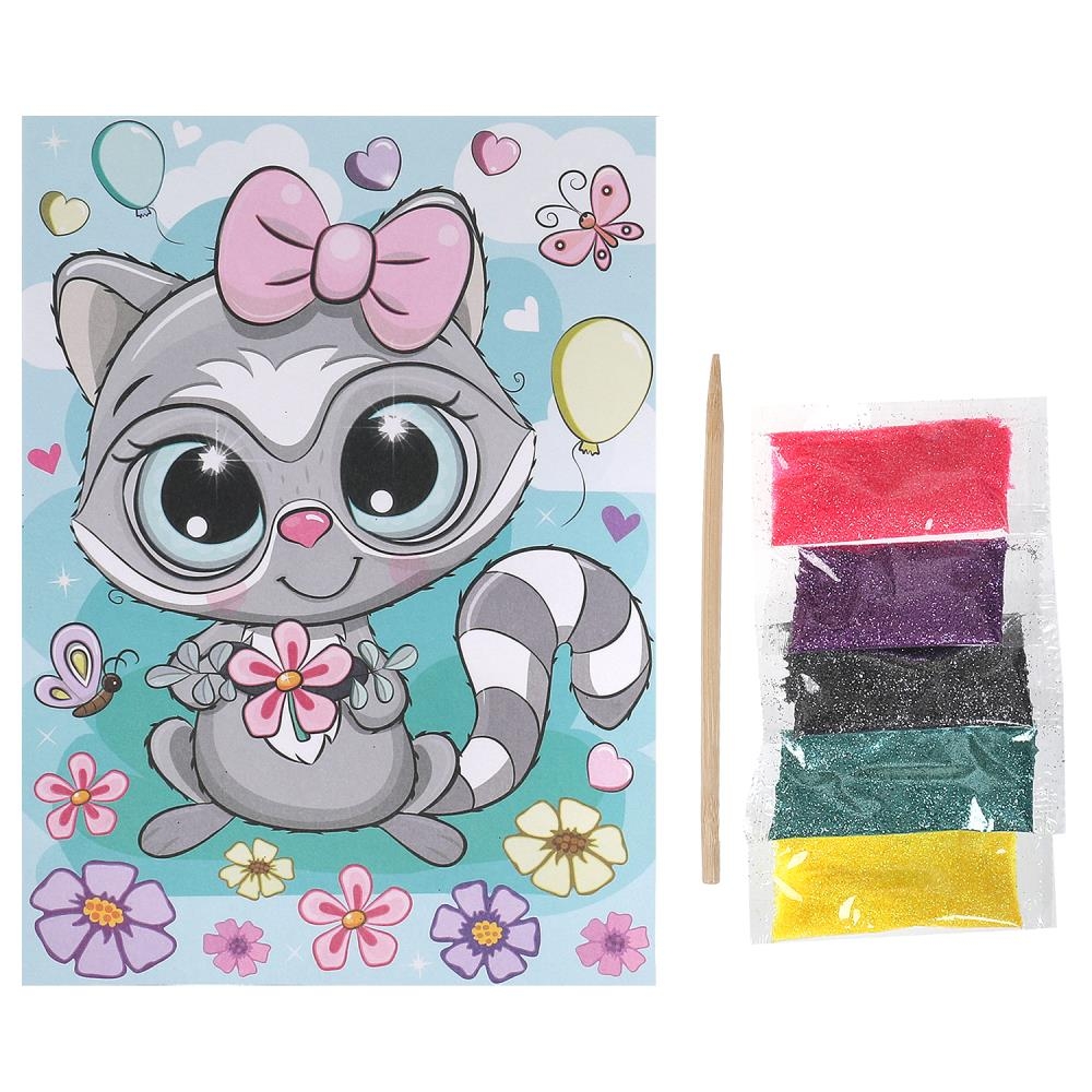 Набор для творчества – аппликация из песка с глиттером "Енотик" – отличный подарок для ребёнка, который будет способствовать развитию его творческих способностей.