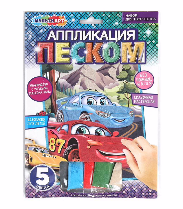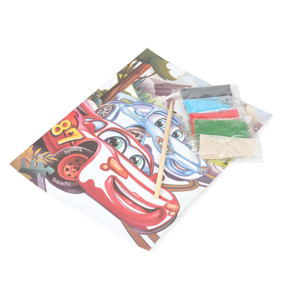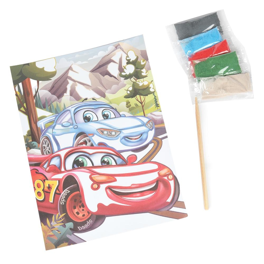 Набор для творчества – аппликация из песка "Тачки" – отличный подарок для ребёнка, который будет способствовать развитию его творческих способностей.