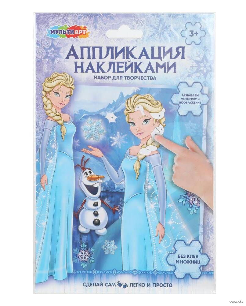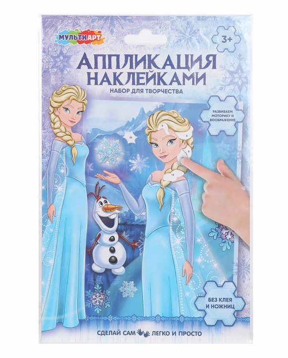 Задача маленьких рукодельников – подобрать недостающие элементы аппликации, которые представлены в виде наклеек. Заполнив основу нужными стикерами, ребёнок получит в результате красивую аппликацию с изображением прекрасной снежной принцессы и её друга-снеговика.