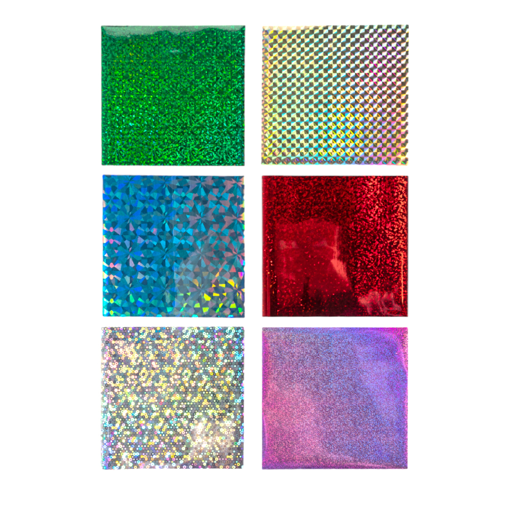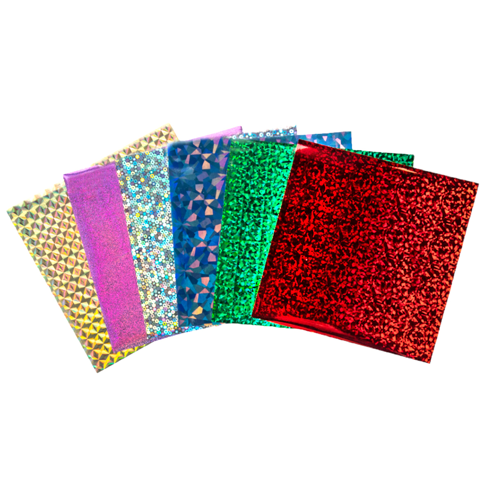 Приложите листок фольги нужного цвета к клеевому слою (яркой, блестящей стороной вверх). Прижмите фольгу и разгладьте, чтобы часть фольги приклеилась и осталась на липком слое. Снимите оставшуюся фольгу и используйте в другом месте.