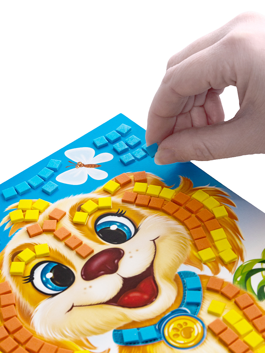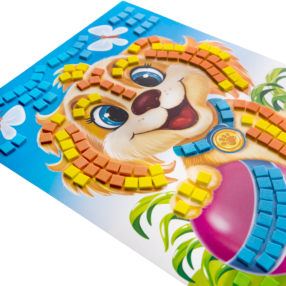 С помощью набора для детского творчества аппликация "Щенок" ребенок создаст симпатичную картинку или открытку, которая украсит интерьер или станет приятным подарком для близких или друзей.