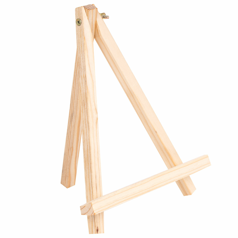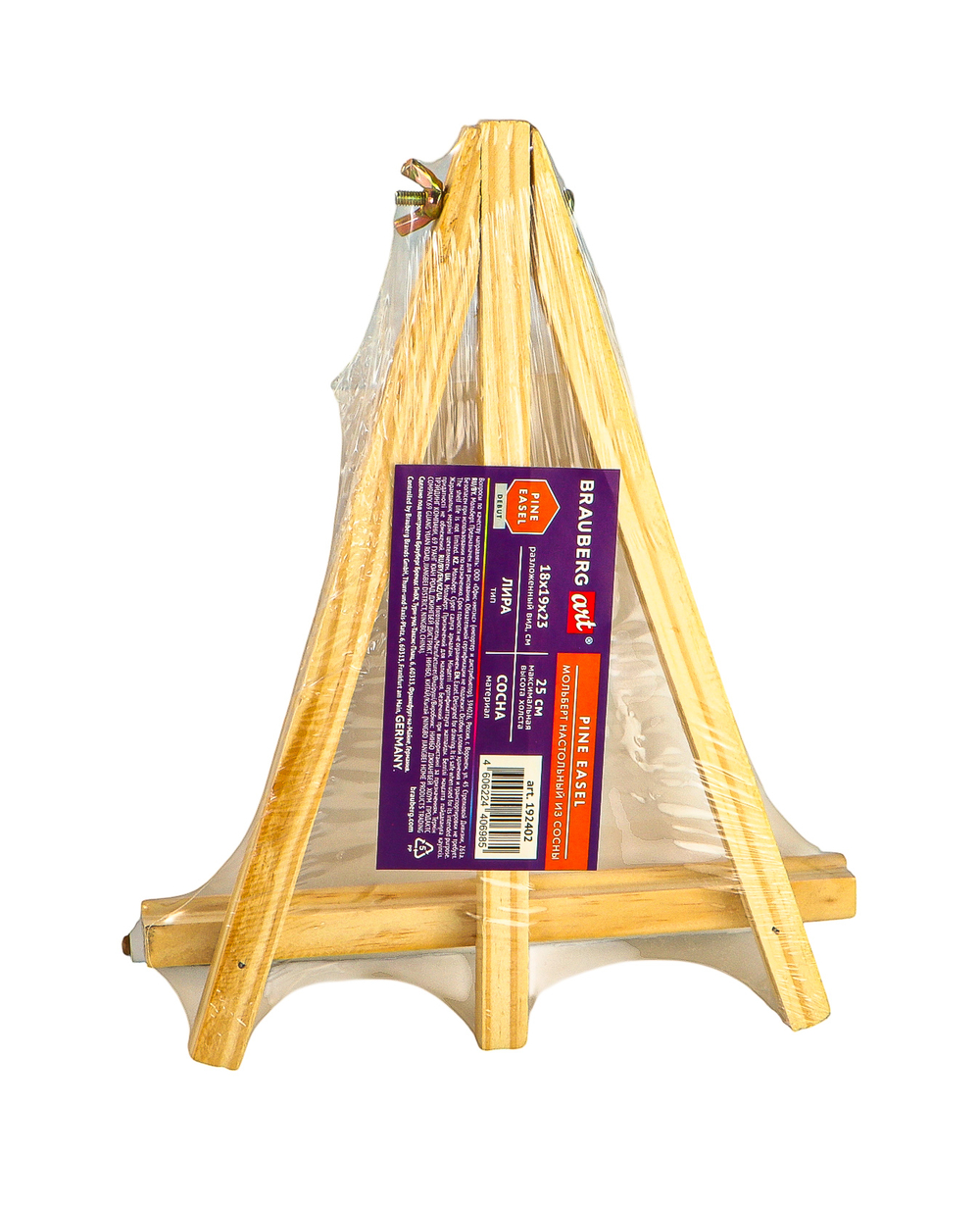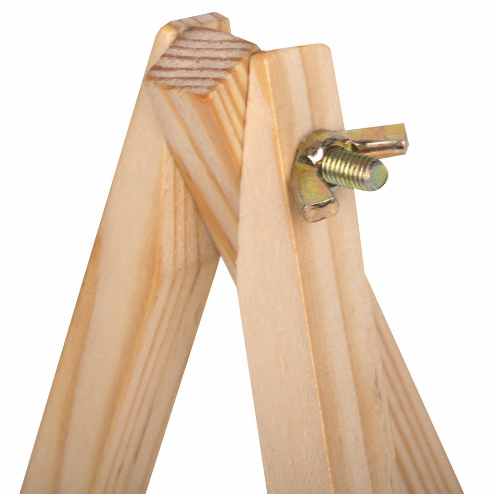 Изготовлен из натуральной сосны. Мольберт настольный прост в установке. Верхнее крепление обеспечивает жесткую фиксацию ножки, что позволяет отрегулировать угол наклона холста.