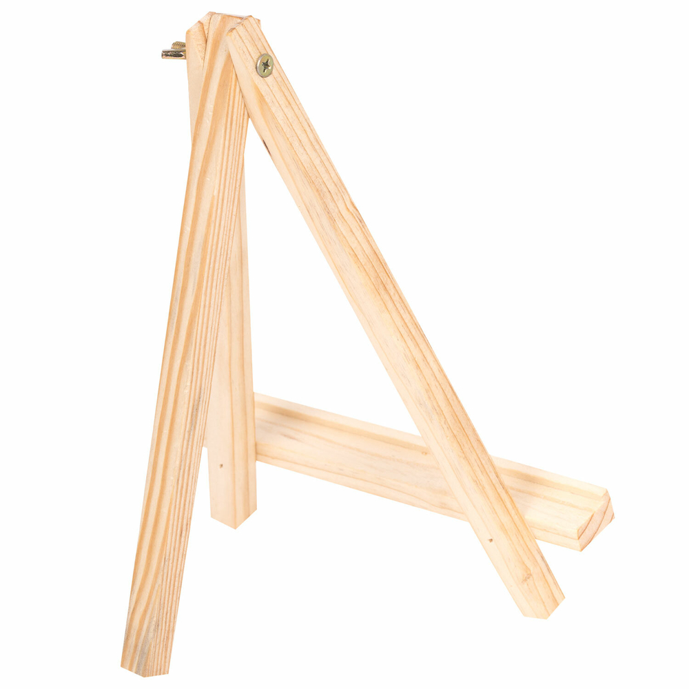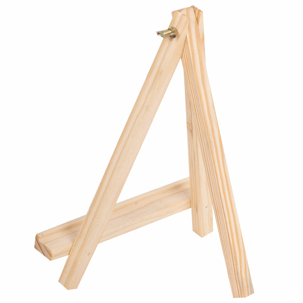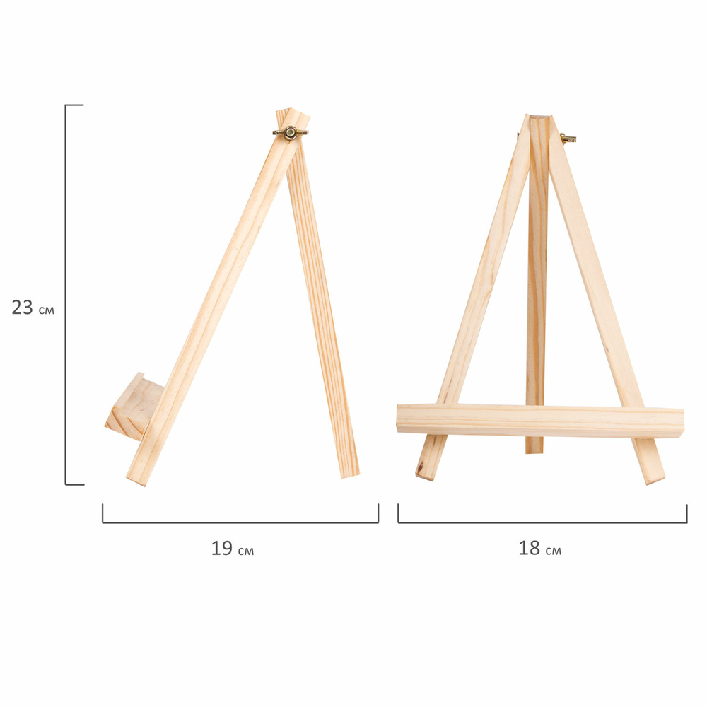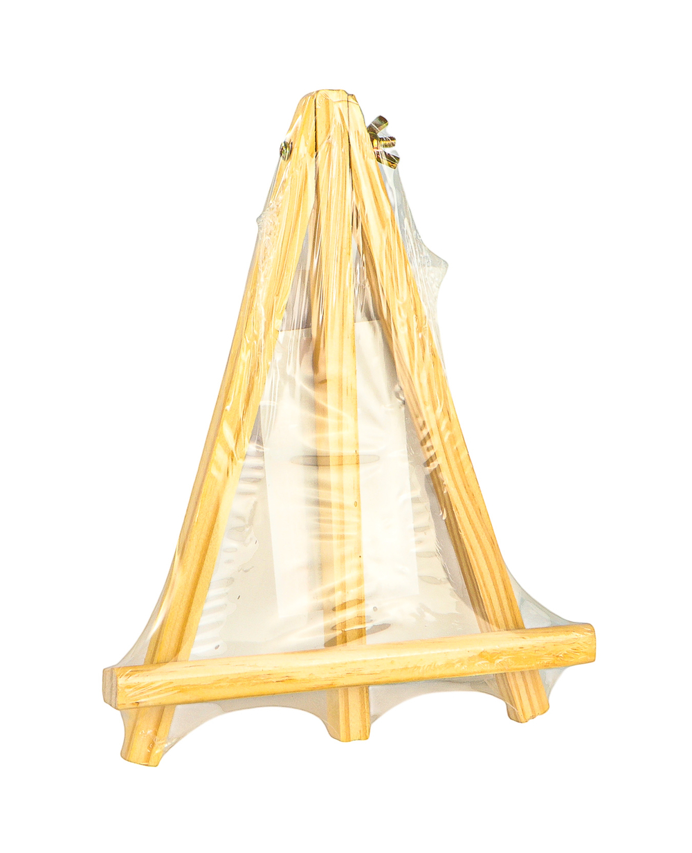 Изготовлен из натуральной сосны. Мольберт настольный прост в установке. Верхнее крепление обеспечивает жесткую фиксацию ножки, что позволяет отрегулировать угол наклона холста.