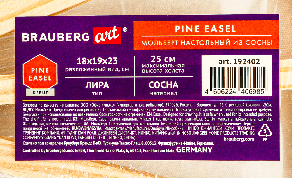 Максимальная высота размещаемого холста – 25 см. Размер в разложенном виде – 18х19х23 см. Упакован в термоусадку.