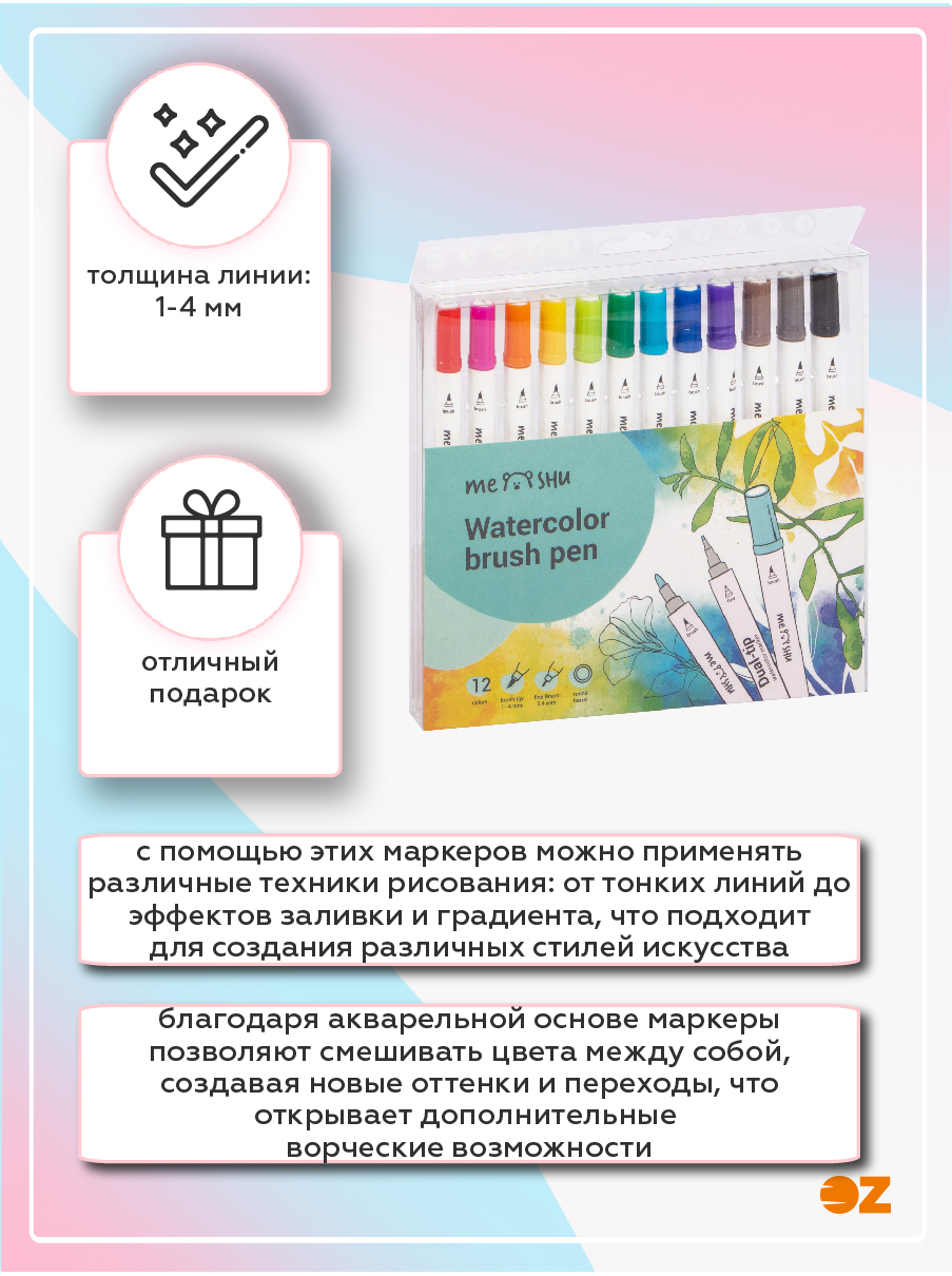 Набор маркеров акварельных "Meshu" (12 цветов)