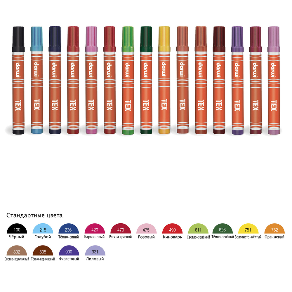 Маркеры для рисования по ткани "Darwi Tex" – это готовая к использованию акриловая краска для ткани на водной основе в упаковке в виде маркеров. Они сочетают в себе удобство использования фломастеров и выразительность акриловых красок. Текстильные маркеры разработаны специально для художественной росписи ткани. Ими можно рисовать на любых материалах: хлопке, синтетике, льне, джуте, шерсти и шелке. Кроме того, акриловые маркеры идеально подходят для декорирования. С их помощью можно рисовать на дереве, пластике, стекле или керамике. Также маркеры прекрасно подойдут для нейл-арта.