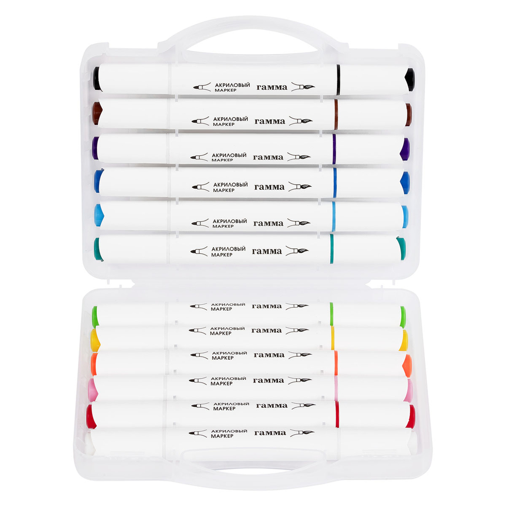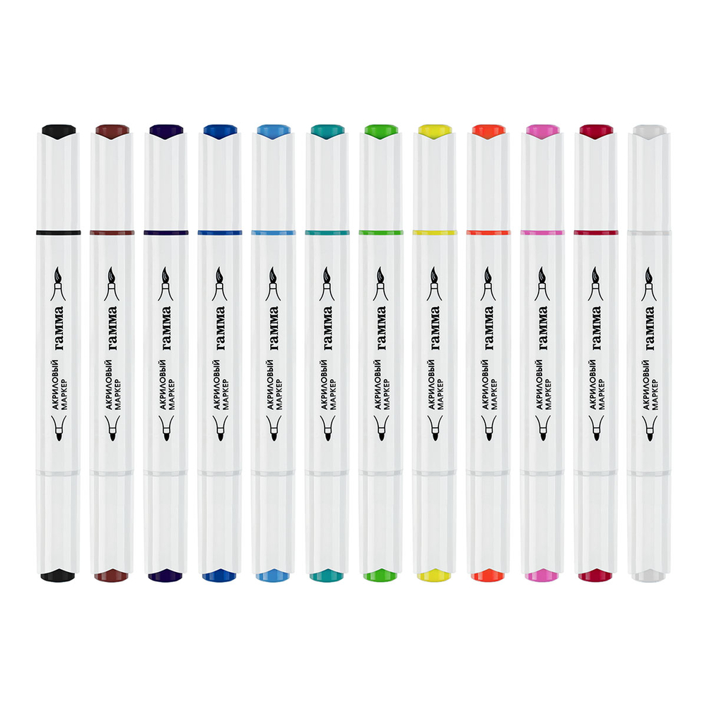 Набор акриловых маркеров серии "Классическая" для детского творчества и хобби. Набор состоит из 12 маркеров. Износостойкий наконечник из нейлона. На колпачке и корпусе вставка, обозначающая цвет чернил. Нумерация цвета на колпачке.