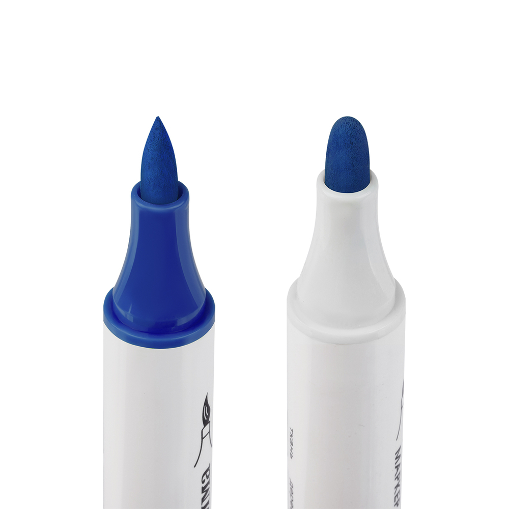 Количество цветов: 12 цветов. Толщина линии – 1-6 мм, форма наконечника – кисть и пуля. Высокие укрывные свойства и стойкость после высыхания. Не требуют активации.