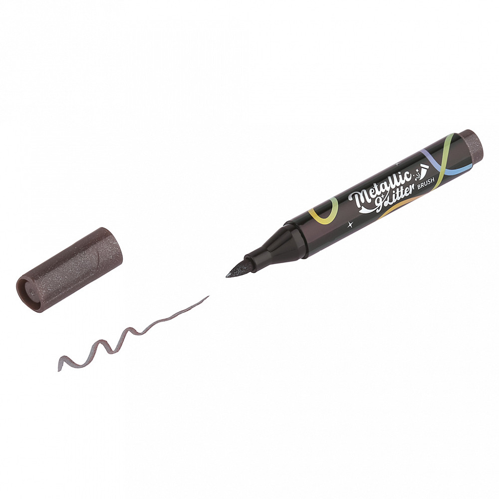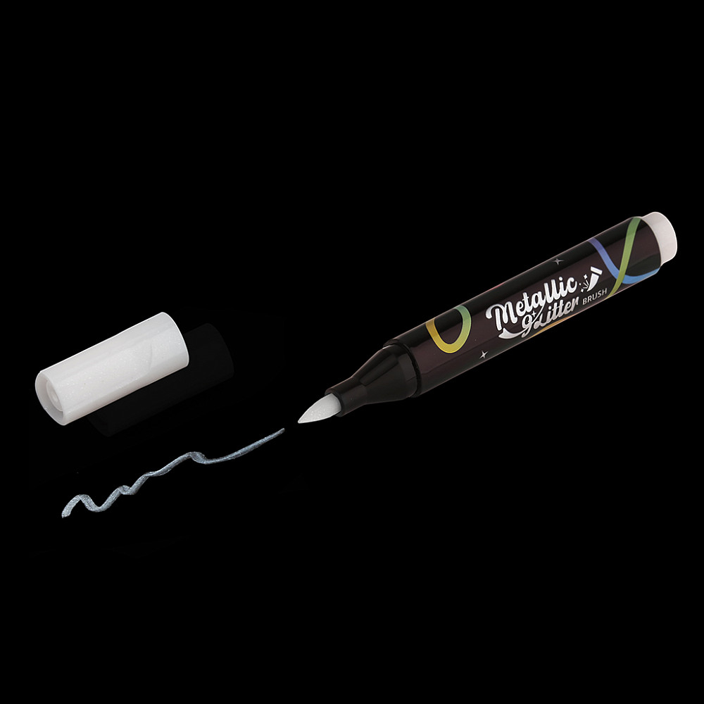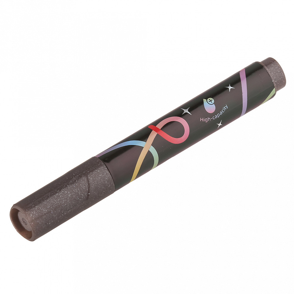 Маркер с наконечником‑кистью предназначен для нанесения надписей и рисунков на бумагу, ткань, металл и стекло: его гибкий пишущий узел позволяет варьировать толщину линии, а чернила обеспечивают устойчивое, водостойкое покрытие на разнообразных поверхностях.