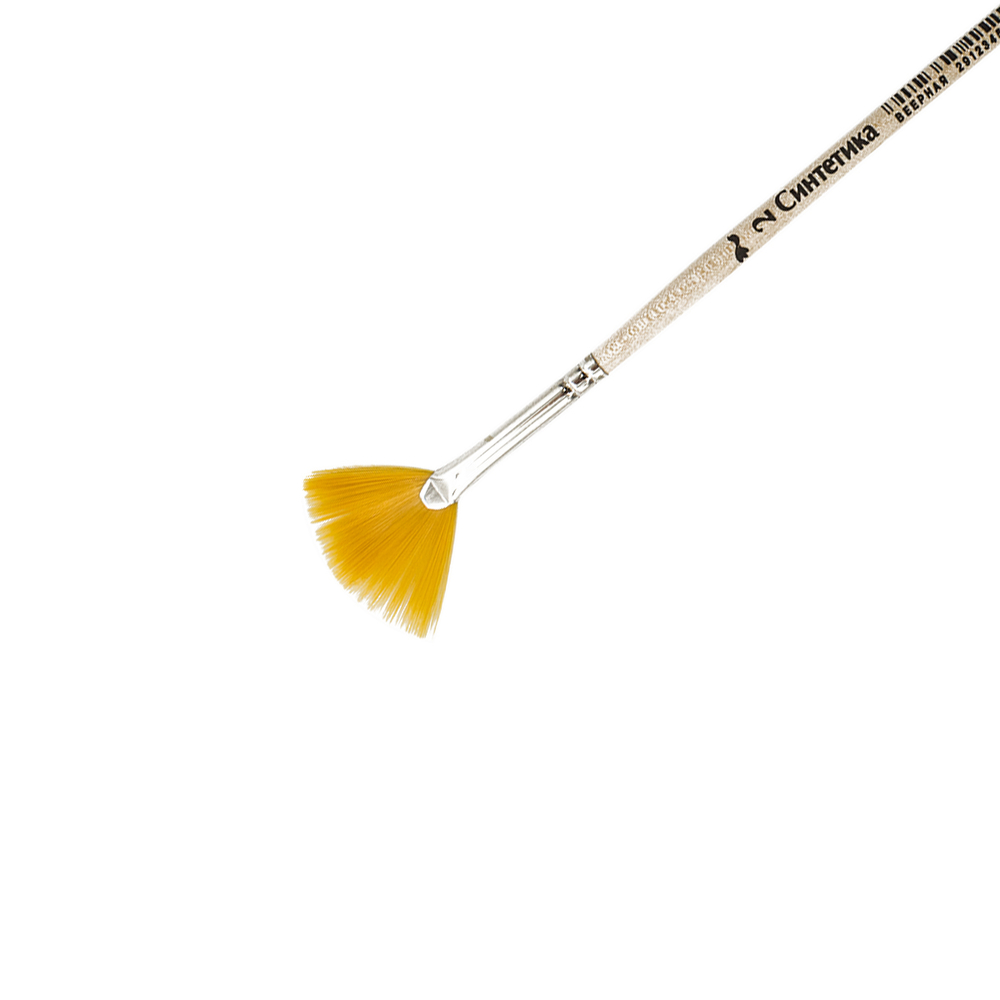 Материал рабочей части кисти – синтетика. Синтетическое волокно по качеству не уступает натуральному: оно прочное, упругое, устойчивое к влаге, не осыпается, волоски ровные и не деформируются. Ручка кисти изготовлена из древесины, гладко отшлифована, имеет оптимальную длину и маркировку размера.