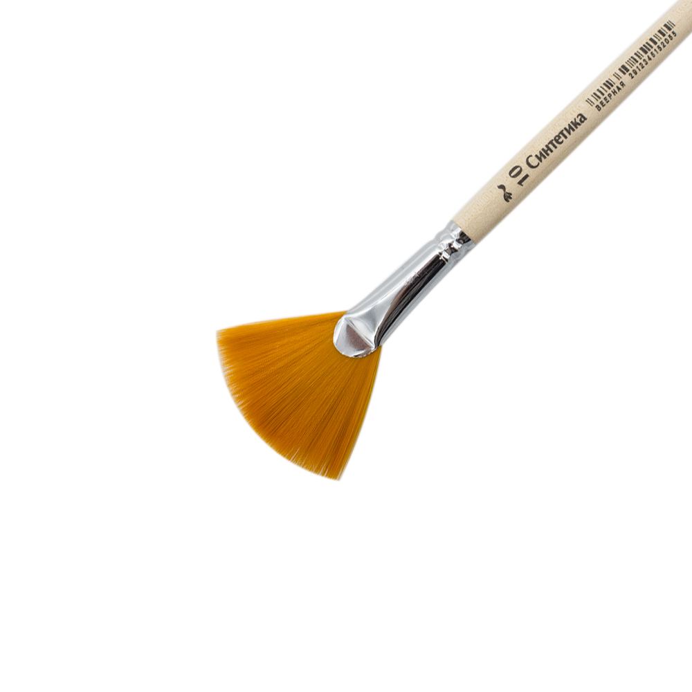 Материал рабочей части кисти – синтетика. Синтетическое волокно по качеству не уступает натуральному: оно прочное, упругое, устойчивое к влаге, не осыпается, волоски ровные и не деформируются. Ручка кисти изготовлена из древесины, гладко отшлифована, имеет оптимальную длину и маркировку размера.