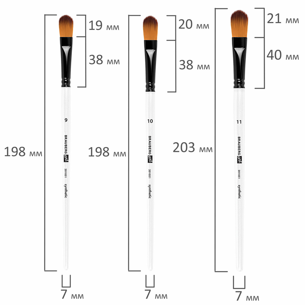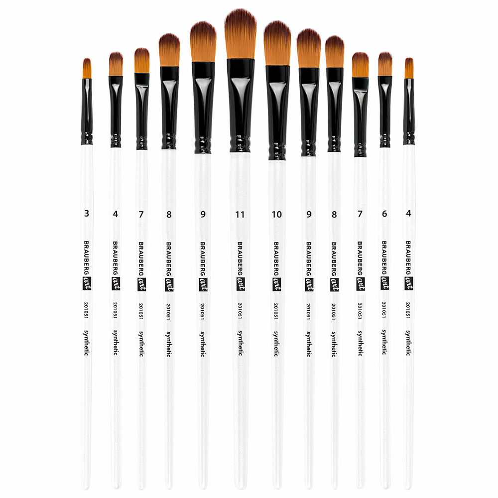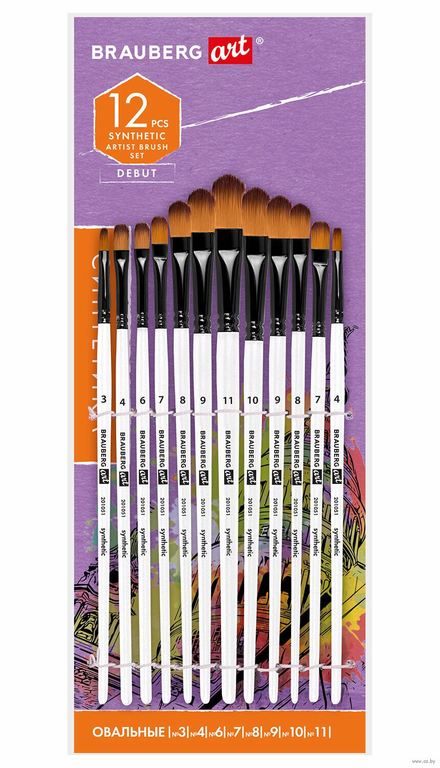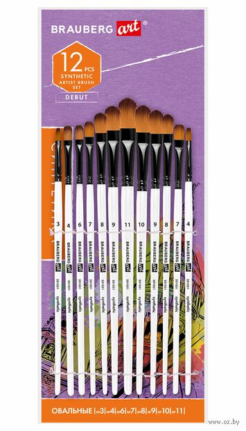 Кисти Art Debut изготовлены с применением синтетики. Отличаются универсальностью в использовании, обусловленной упругостью ворса и прекрасными впитывающими свойствами пучка. Короткая ручка из древесины покрыта лаком, что защищает ее от воздействия красок и влаги. В набор входят 12 кистей овальной формы № 3,4, 6, 7, 8, 9, 10, 11. Номер кисти соответствует реальной ширине пучка в миллиметрах. Упаковка – ОПП-пакет с картонным вкладышем.