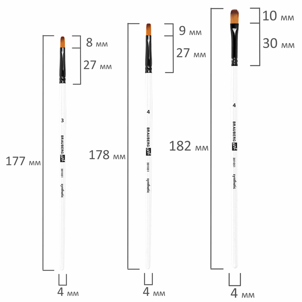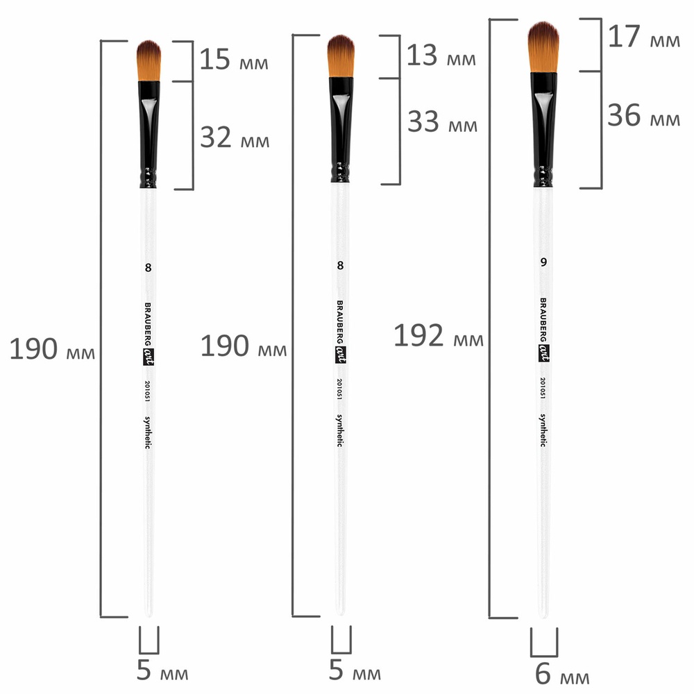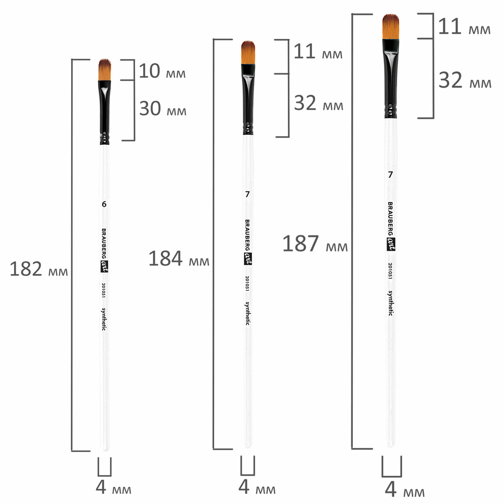 Кисти Art Debut изготовлены с применением синтетики. Отличаются универсальностью в использовании, обусловленной упругостью ворса и прекрасными впитывающими свойствами пучка. Короткая ручка из древесины покрыта лаком, что защищает ее от воздействия красок и влаги. В набор входят 12 кистей овальной формы № 3,4, 6, 7, 8, 9, 10, 11. Номер кисти соответствует реальной ширине пучка в миллиметрах. Упаковка – ОПП-пакет с картонным вкладышем.