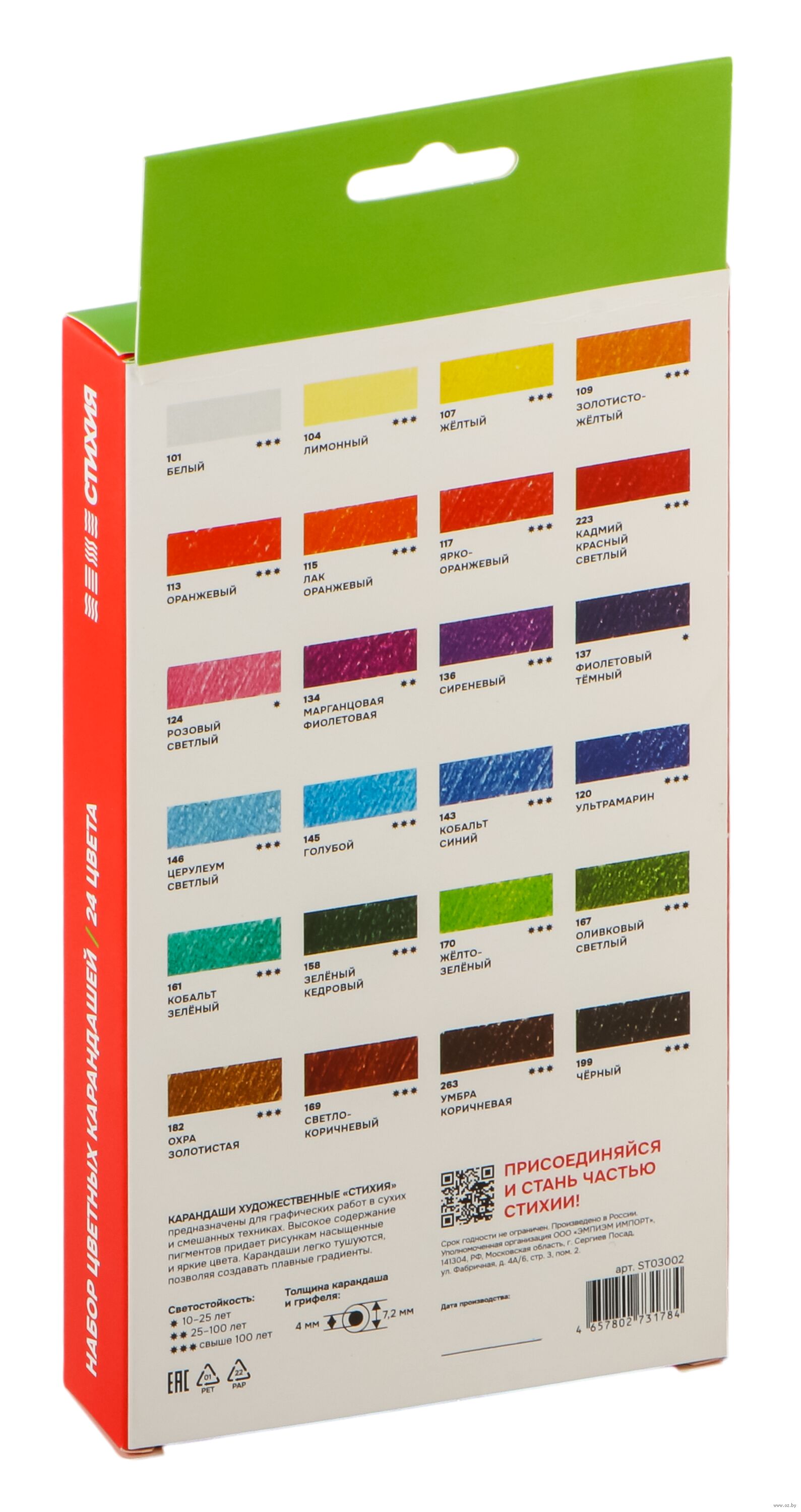 Цветные карандаши Стихия – универсальный творческий инструмент: подойдут как для новичков, так и для профессионалов, для легких зарисовок и проработанных, подробных иллюстраций, раскрасок, для детей и взрослых.