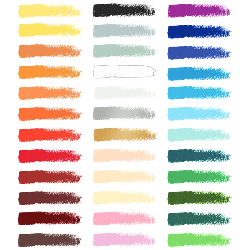 Яркие насыщенные цвета легко смешиваются, не светлеют и не темнеют со временем. Масляная пастель рисует на поверхностях разных фактур, не осыпается и не требует использования закрепителя краски. Каждый мелок упакован в защитную манжету с информацией о цвете. Длина мелка – 57мм, диаметр сечения – 8мм.