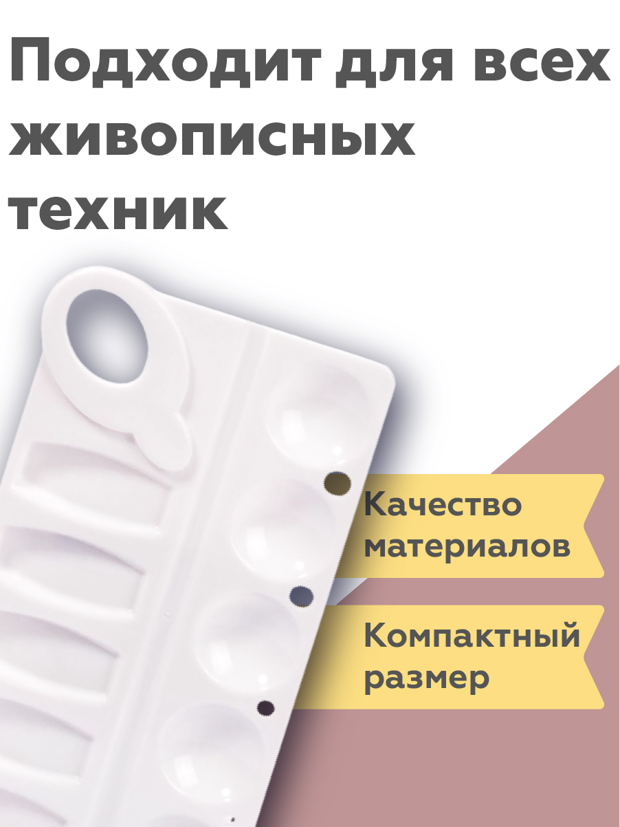 Палитра для рисования идеально подходит для смешивания красок и получения новых цветов. Легкая и практичная с отверстием для руки палитра удобна в использовании.