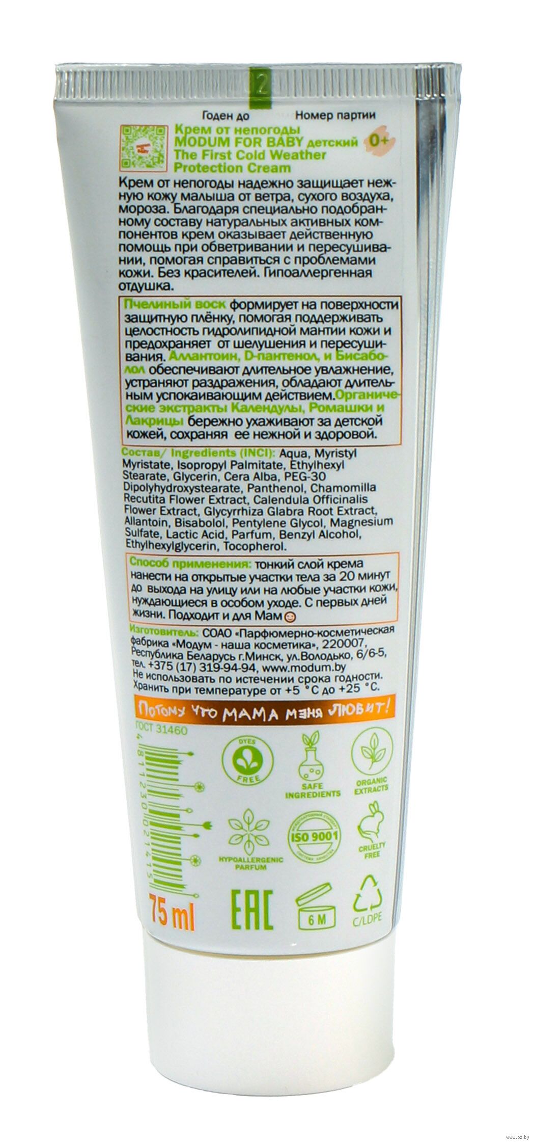 Крем от непогоды надежно защищает нежную кожу малыша от ветра, сухого воздуха, мороза. Благодаря специальному составу натуральных активных компонентов крем оказывает действенную помощь при обветривании и пересушивании, помогая справиться с проблемами кожи. Без красителей. Гипоаллергенная отдушка.