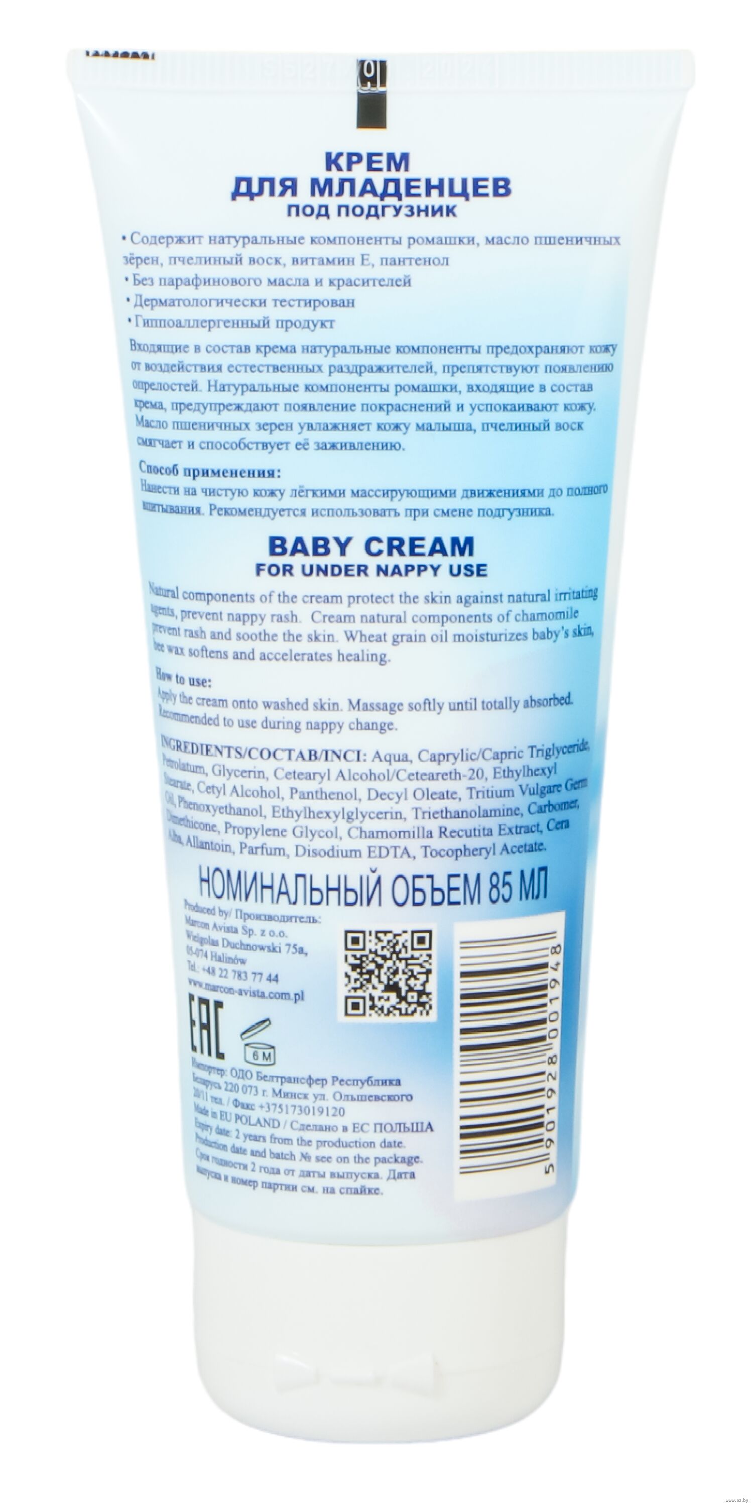 Входящие в состав крема натуральные компоненты предохраняют кожу от воздействия естественных раздражителей, препятствуют появлению опрелостей. Натуральные компоненты ромашки, входящие в состав крема, предупреждают появление покраснений и успокаивают кожу. Масло пшеничных зерен увлажняет кожу малыша, пчелиный воск смягчает и способствует ее заживлению.